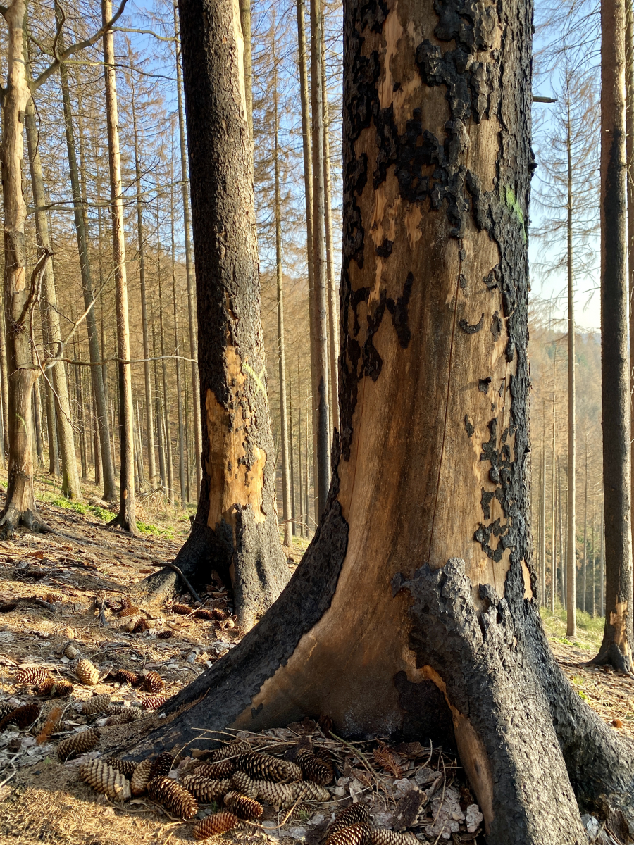 Herzlichen Dank für alle Einschätzungen, hier ein paar weitere Fotos! Ich hatte eigentlich auf Spitzmorcheln an der Stelle des Waldbrandes spekuliert... War aber nichts zu finden. Dafür einige an Holzlagerplätzen. Fotos anbei.