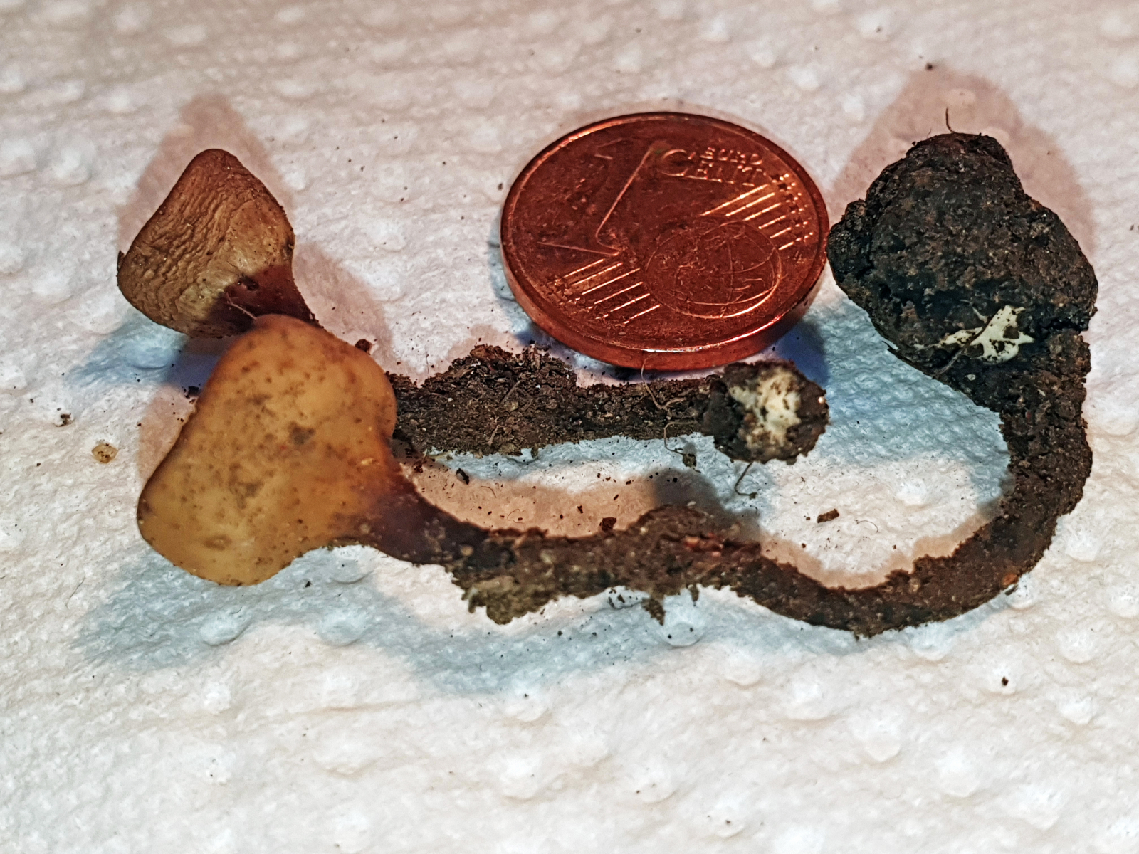 Zu den auf den Bildern ersichtlichen Makromerkmalen kann man noch die Größe ergänzen. Durchmesser der Fruchtkörper 0,5 (Jung) bis etwa 2,5cm (Ausgewachsen, ausgebreitet).