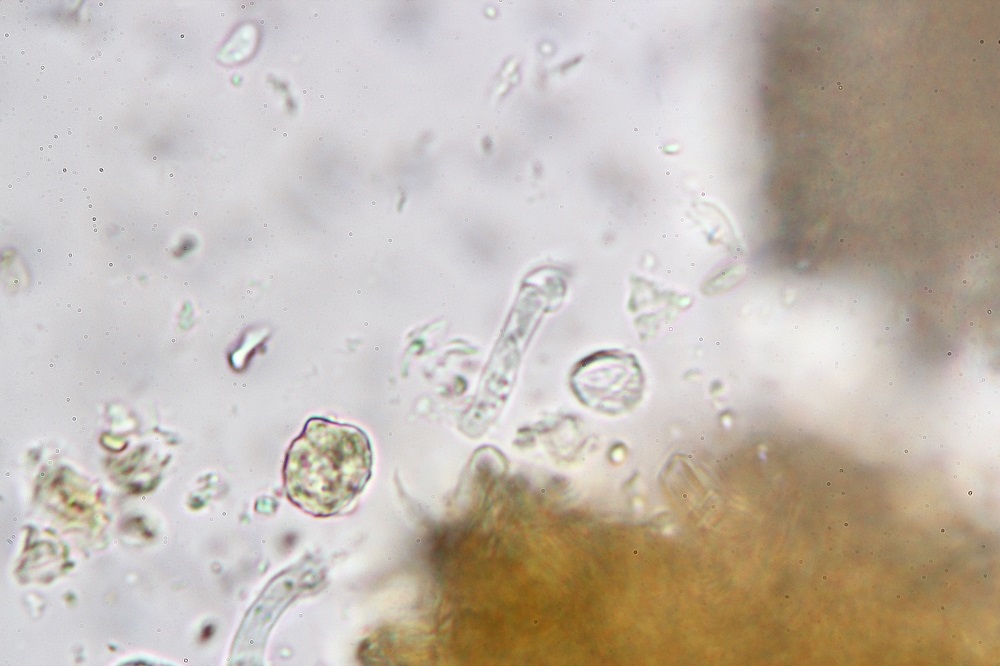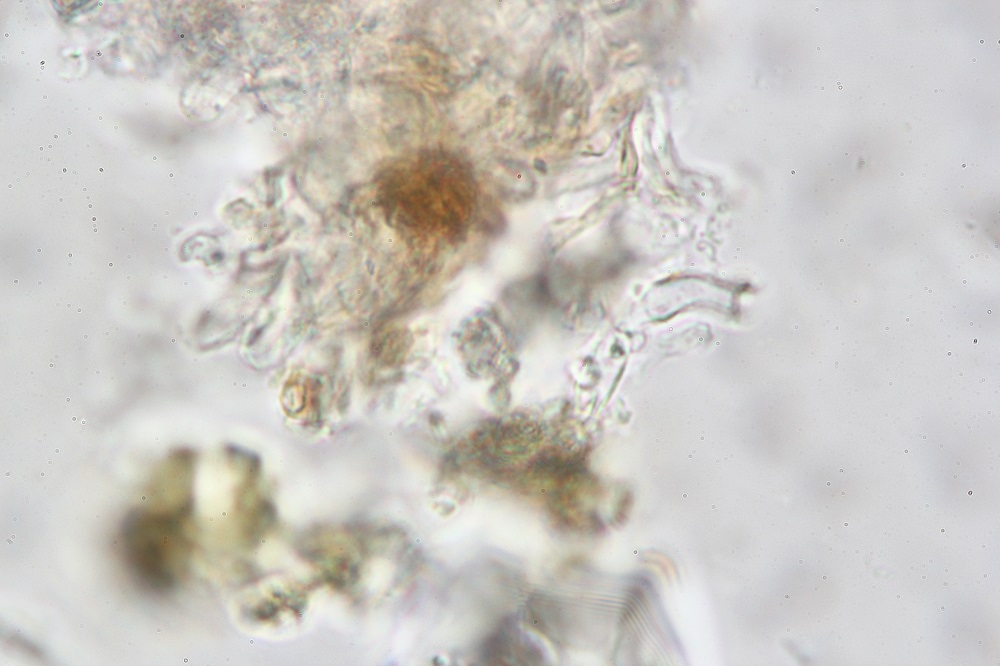 Die Reaktion vor Ort auf KOH-20% war braun-dunkelrot und die Sporen sind inamyloid.