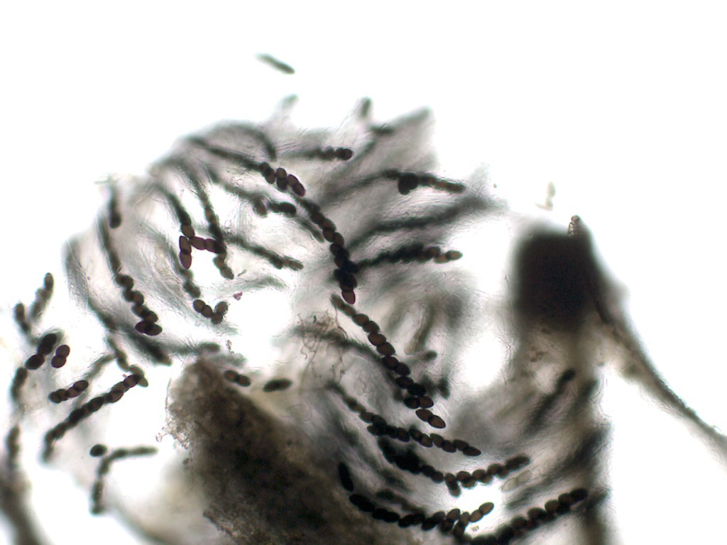 Die Sporenmasse: 40-51x15-18µ, wobei einige Sporen merkwürdig spitz/zitronenförmig zulaufen...aber vielleicht darf die Art so variabel sein