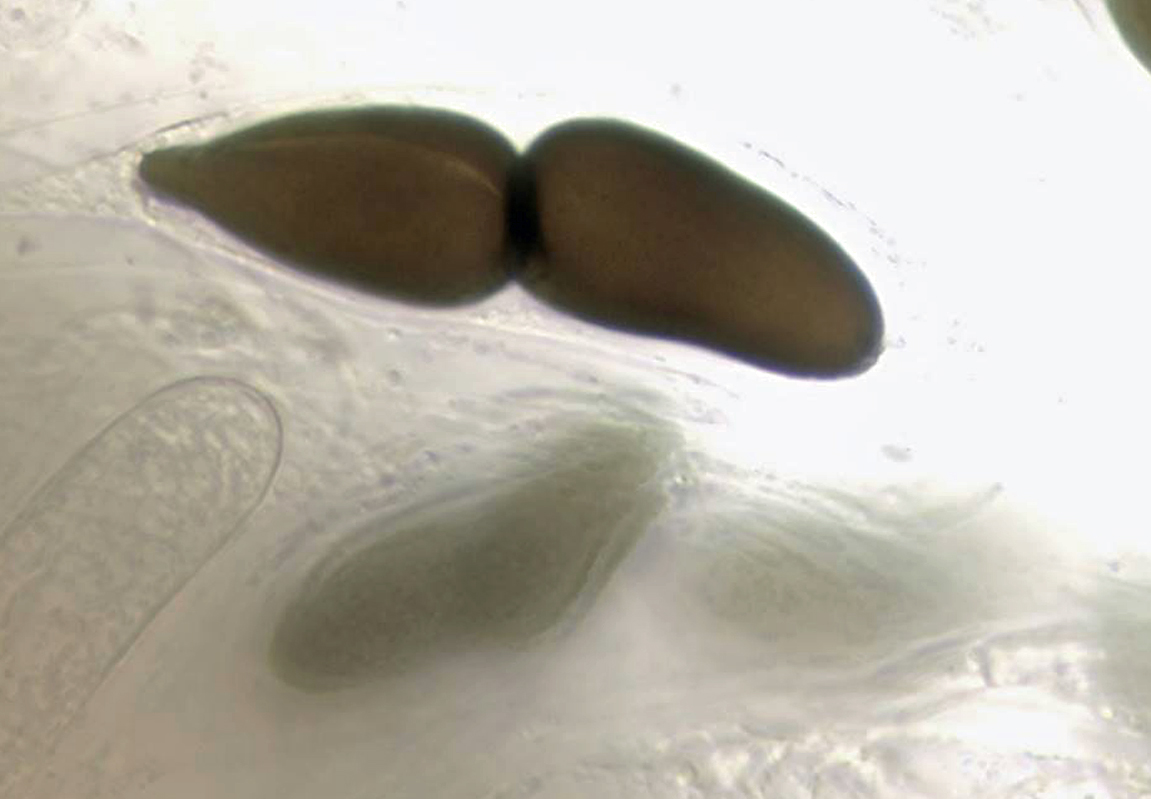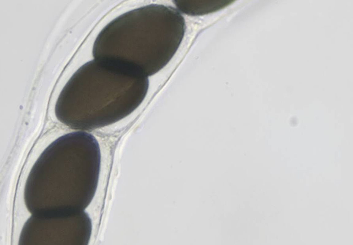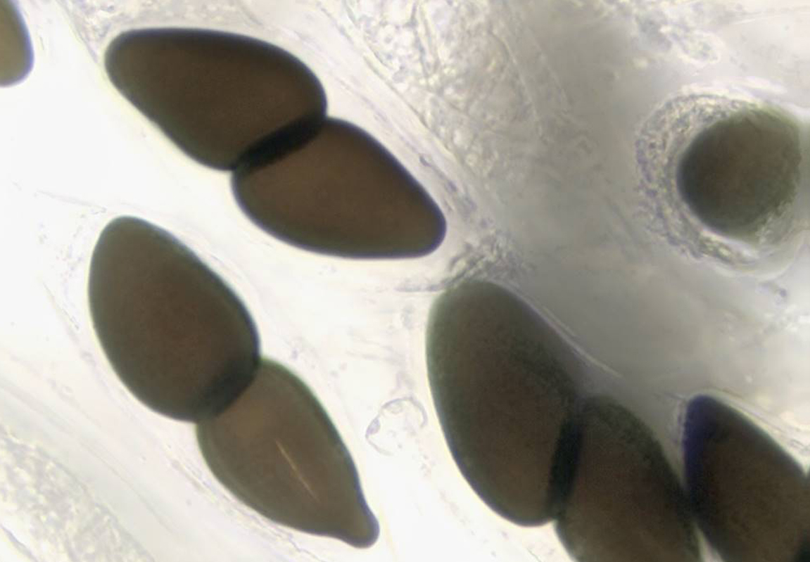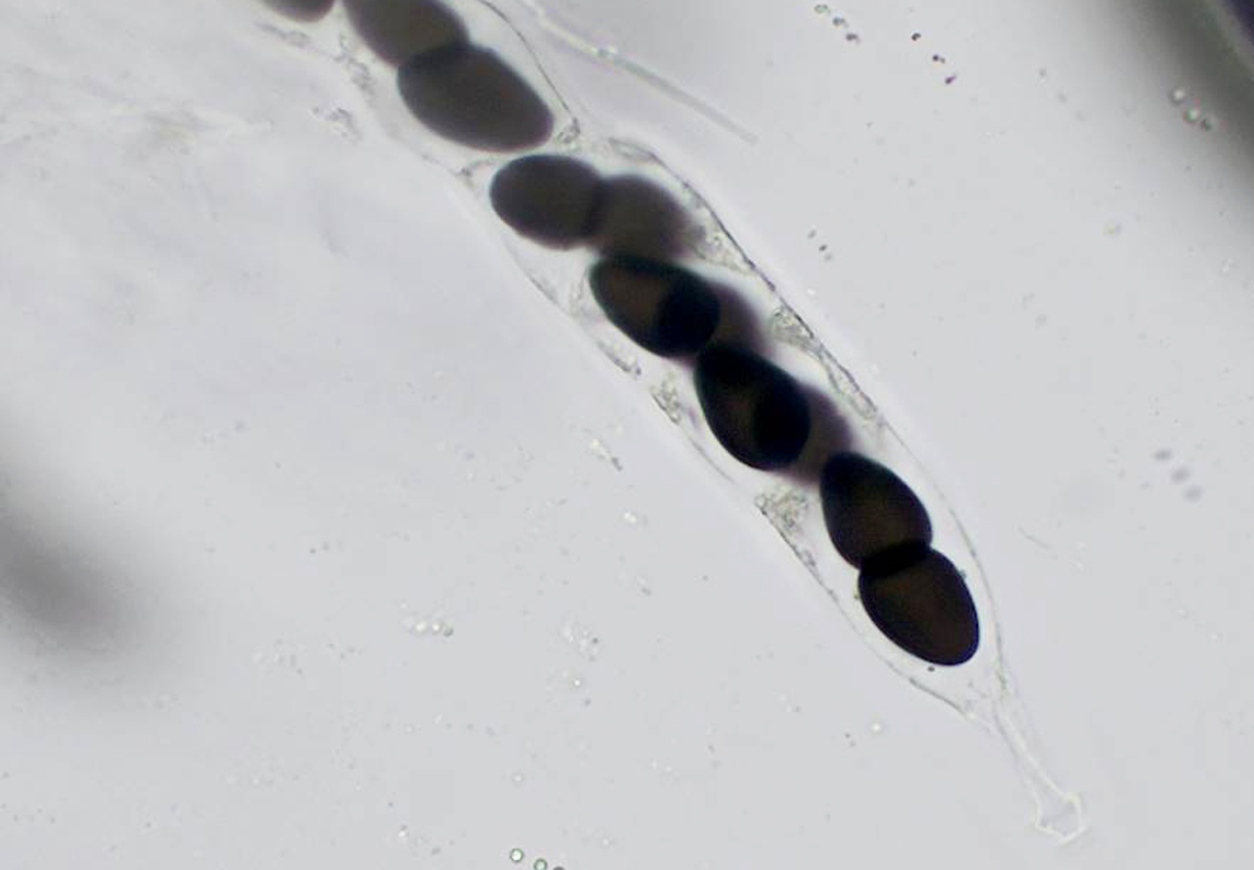 Die Sporen liegen achtsporig, uniseriert im Ascus und sind tief und schräg septiert.