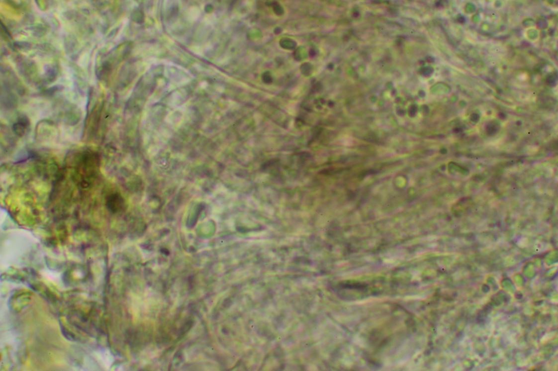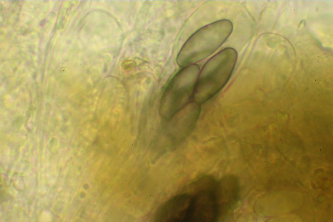 Ich wollte eigentlich aus diesem Fund eine S. verrucisporus machen, doch die schön und auffallend weinrotfarbenen Fruchtkörper, die relativ schlanken, elliptischen bis spindeligen Sporen bis jung 17.5 mü. Länge passen da nicht so recht. Jetzt hadere ich zwischen S. obscurus oder könnte es vielleicht noch S. purpureus sein? Bei Reife, wenn die Sporen ornamentiert sind, scheint mir, dass die Sporen etwas schrumpfen und dann nicht mehr die 17.5 mü. erreichen.