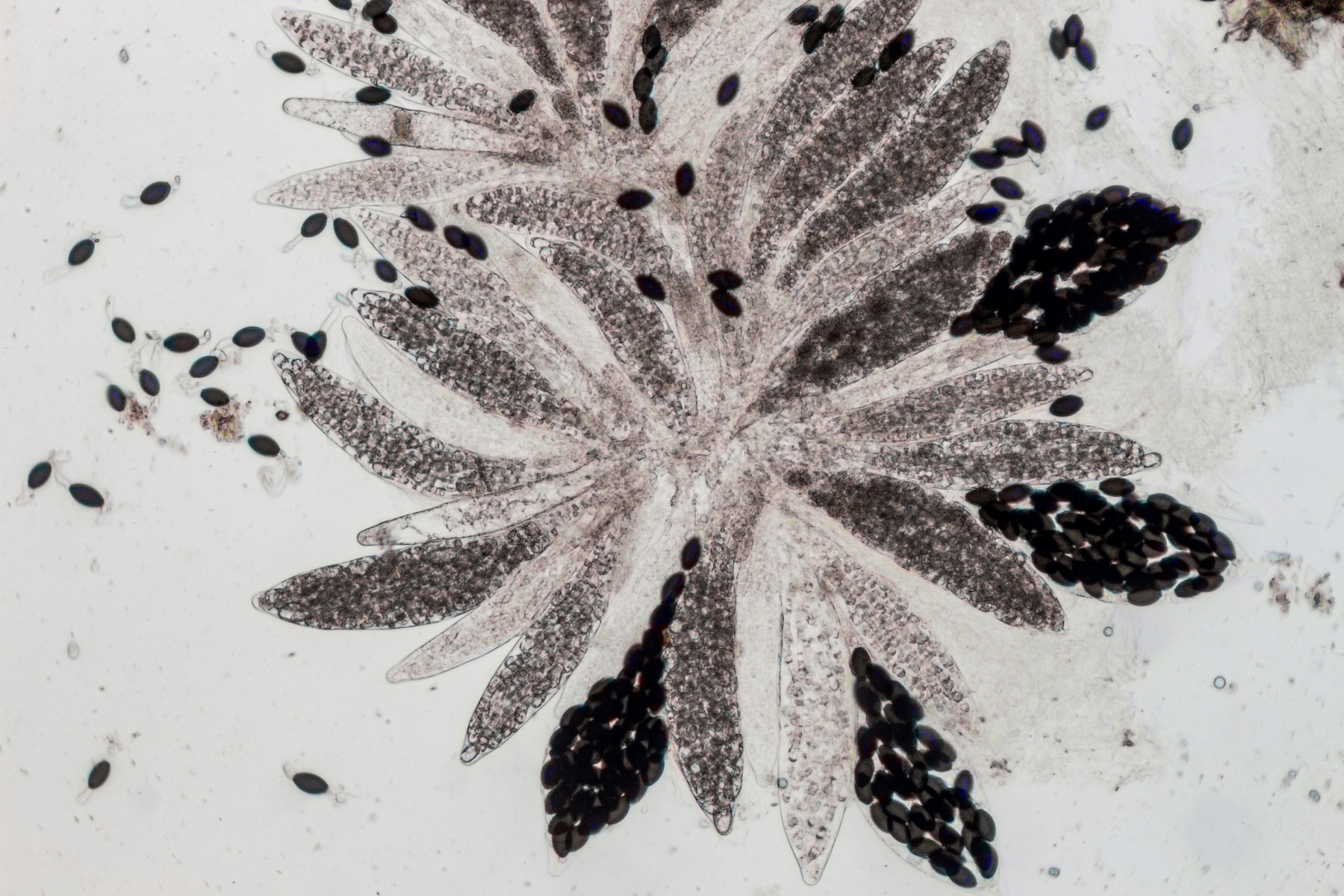 Die Pericthecien sind so massiv, dass kaum Licht durchkommt, sie sind aber kugelförmig mit geradem Kopf, ohne Haare oder dergleichen.