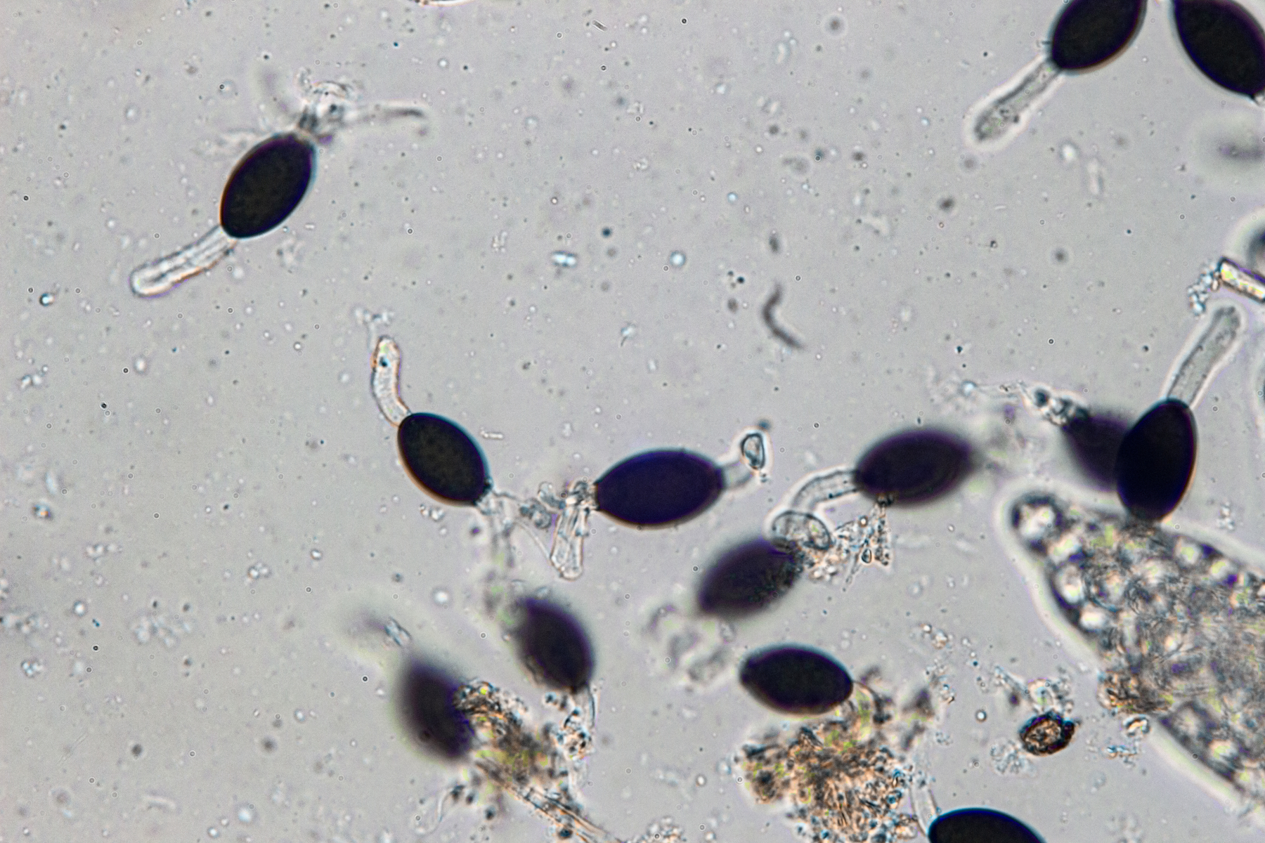 Bei dieser 64er komme ich nicht weiter. Es lassen sich keine Tuberkeln finden, Sporenkopf 30 x 16 µm, Cauda 10 x 5 µm, kaum Variationsbreite.