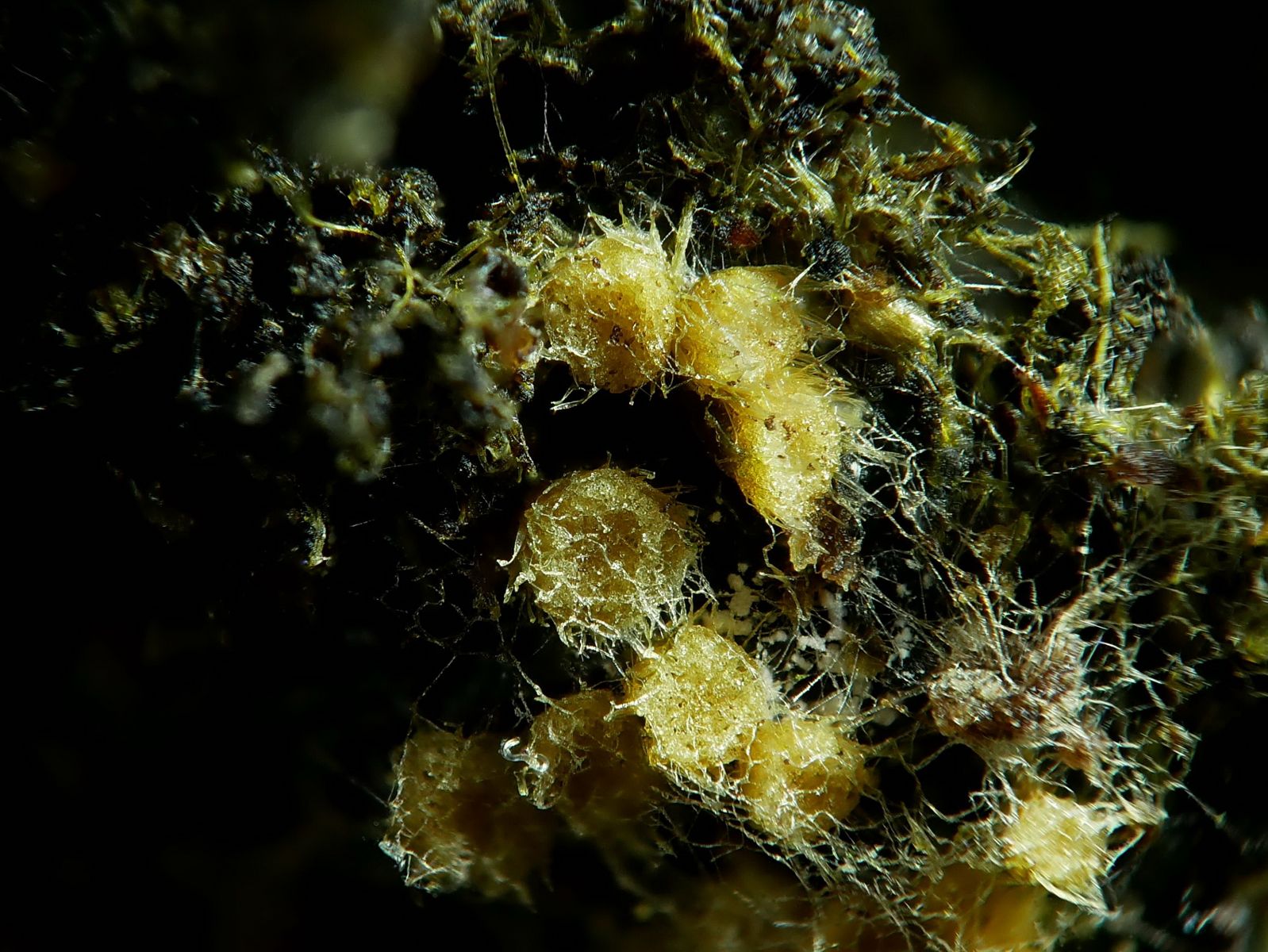 Die Sporen sind 20,1 - 21,5 x 11,1 - 11,5 µm groß und würden allenfalls zu Trichobolus dextrinoideosetosus passen.
