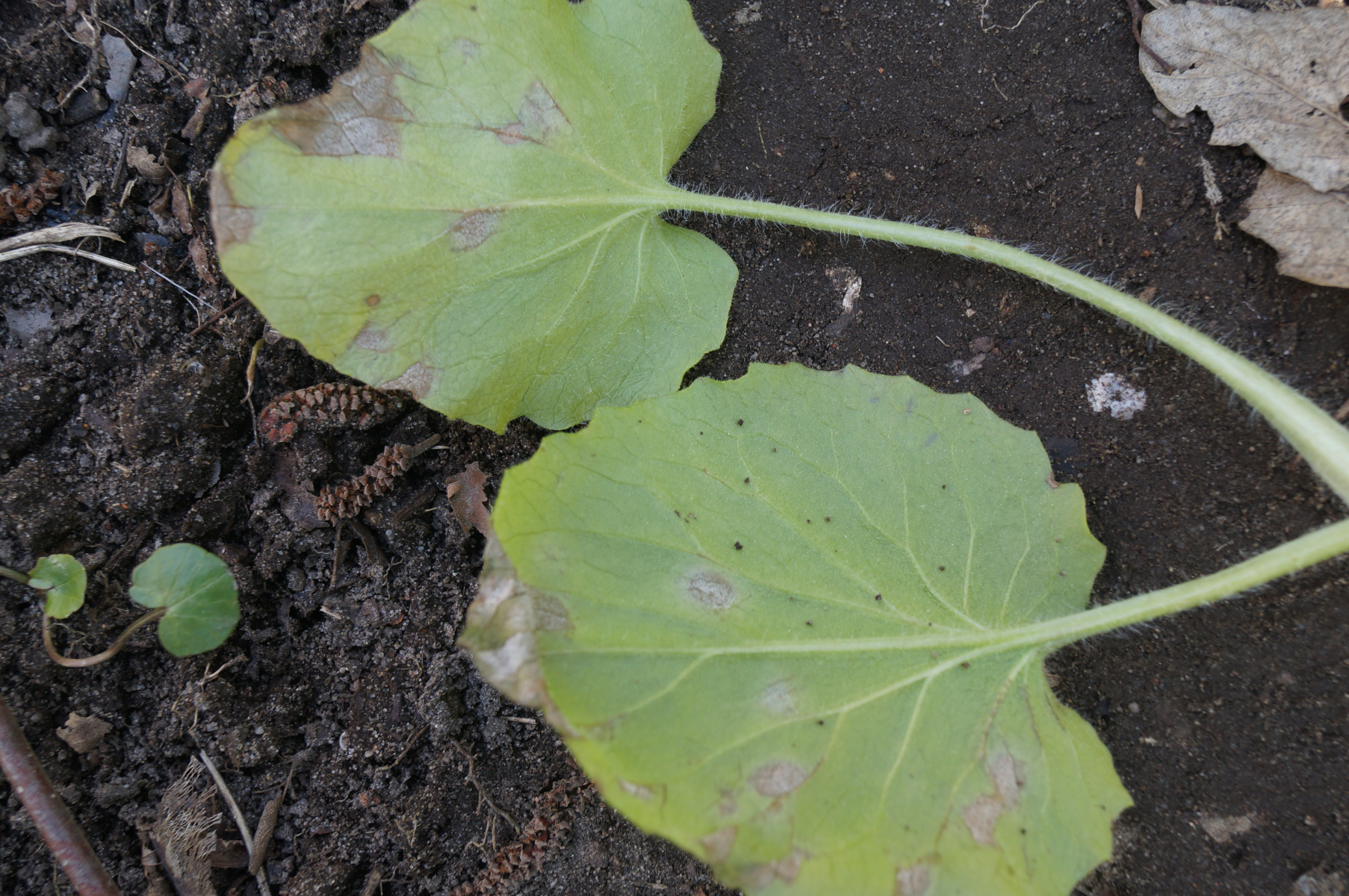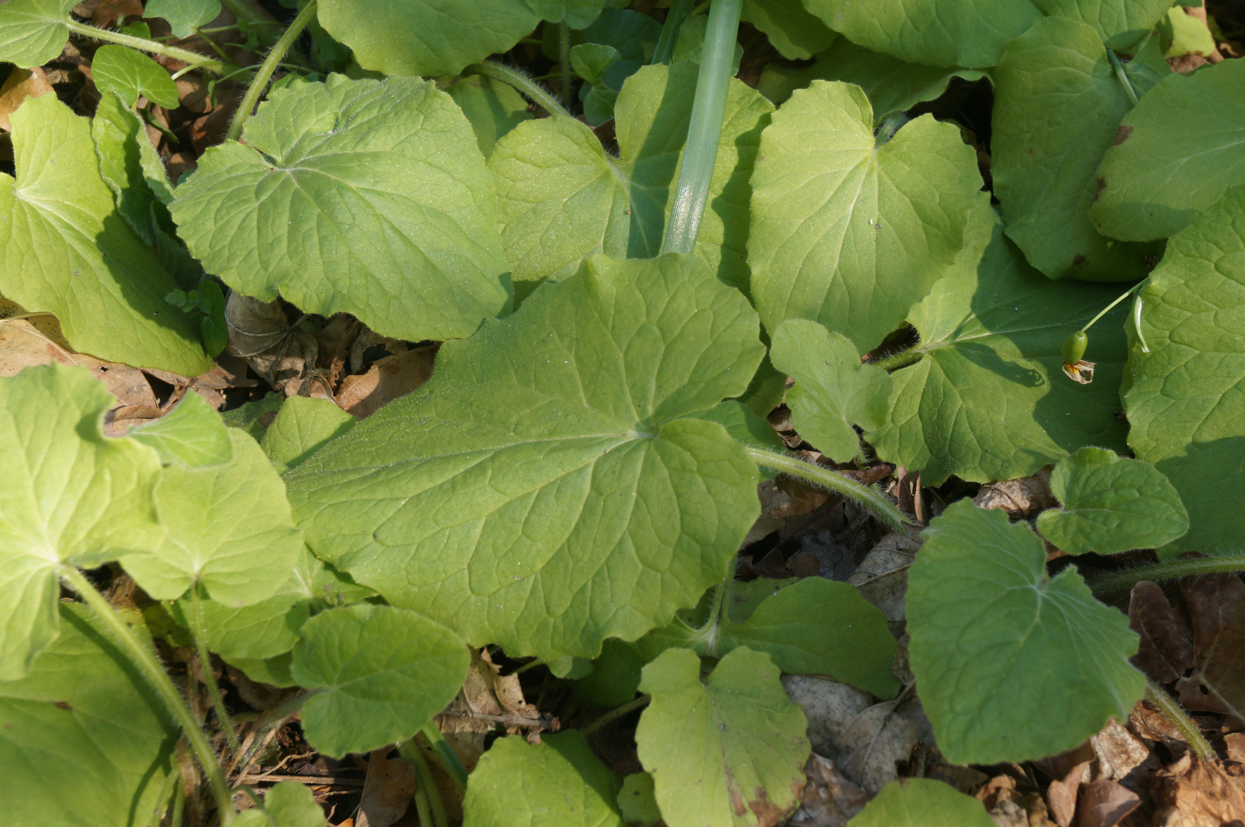 Mir ist bei diesem Streifzug eine seltsame Pflanze aufgefallen, die an einigen Stellen völlig rasig wuchs. Aufällig waren die großen herzförmigen Blätter und die haarigen Blattstiele. Dank einiger Botanikerfreunde bei FB konnte die Pflanze als Doronicum pardalianches - Kriechende Gämswurz bestimmt werden. Bei näherer Betrachtung fielen mir große braune Blattnekrosen auf. Unterersetis war ein weißer Pilzrasen gut erkennbar. Anhand des Pflanzenwirtes konnte ich den Pilz als Ramularia doronici bestimmen.