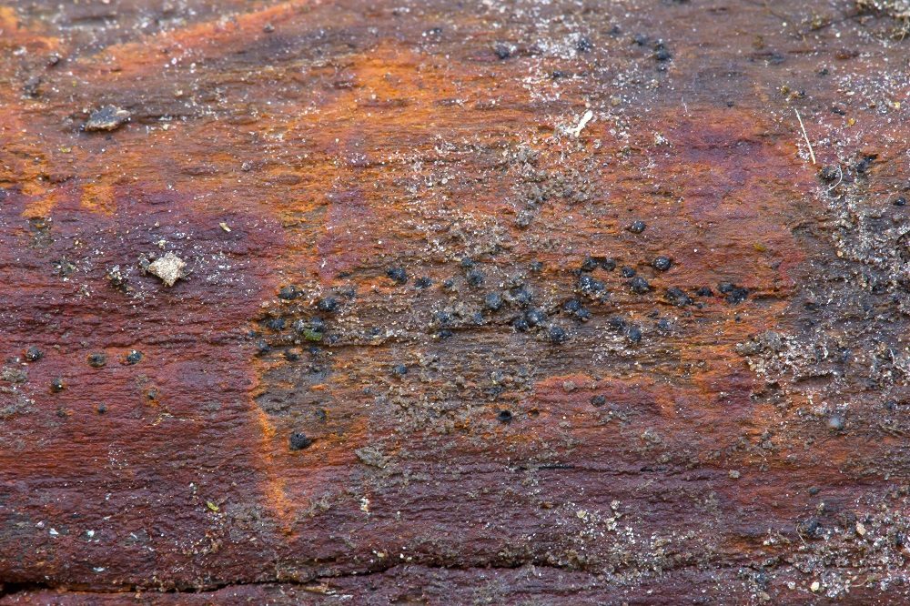 Der rote Belag des Holzes auf dem ersten Bild hat allerdings nichts mit Annulusmagnus triseptatus zu tun, oder?