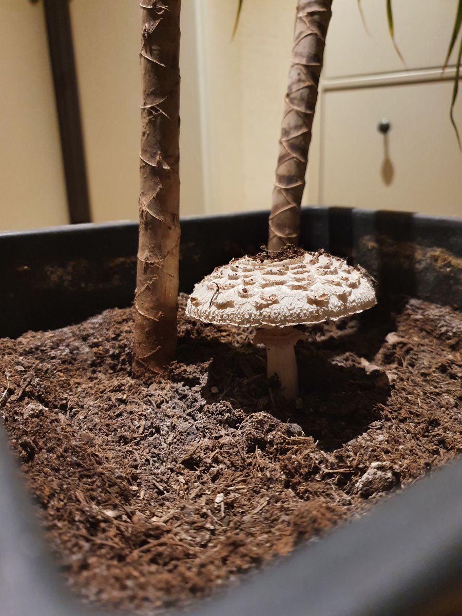 Na ja , ein Schirmling - im Blumentopf in der Wohnung kaum bestimmbar.