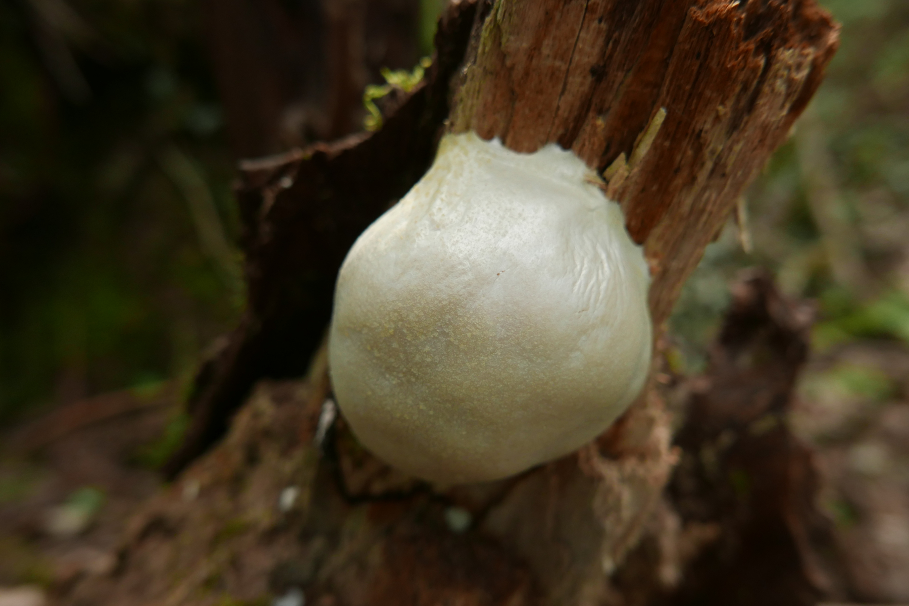 06. An dem vergehenden Birkenstamm sport ein Pilz sein weißes Pulver ab
