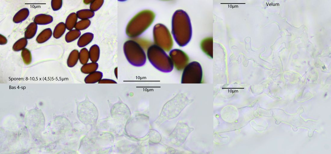 Dort gibt er die Sporen mit 10-11,2 x 6,2-7,5 x5-5,5 µm etwas kleiner an.