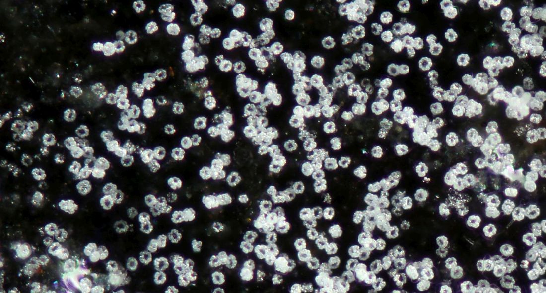 Charakteristische Konidien, grob 14-17µm Durchmesser, oben mit fein rauer Oberfläche, damit hält sich die Luft im Inneren besser. Für das Präparieren empfiehlt es sich, z.B. etwas Seife ins präparat zu geben, dann bekommt man störende Lufteinschlüsse recht gut raus und sieht die Struktur der Konidien besser.