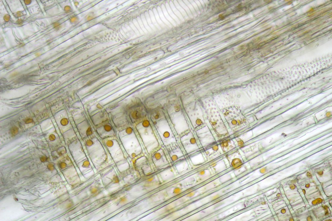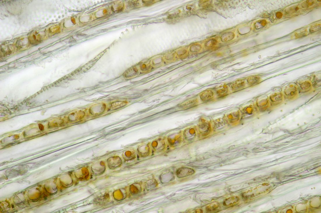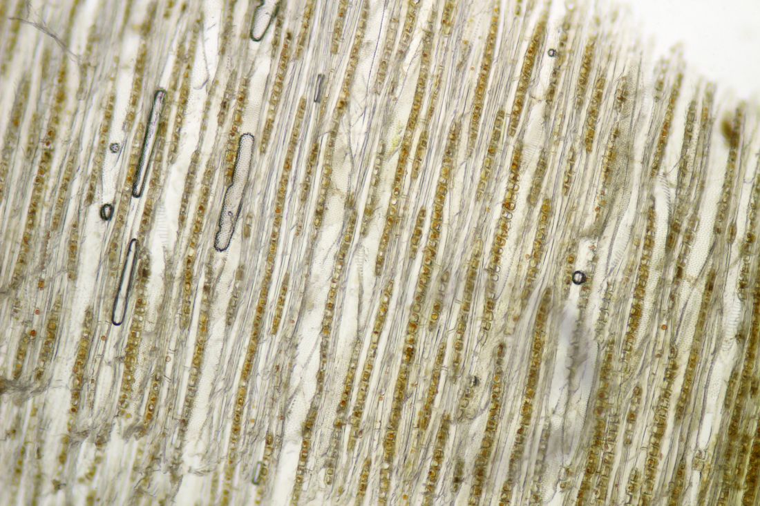 Tangentialschnitt mit einreihigen, homogenen Markstrahlen: