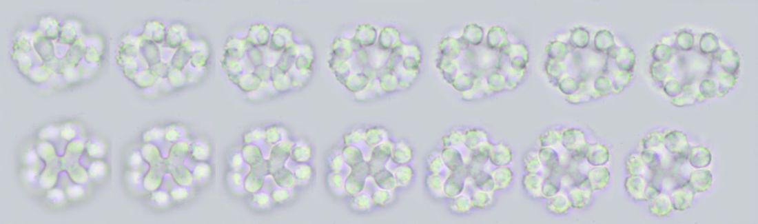 Hier eine Fokusreihe mit den verschiedenen Schärfeebenen nebeneinander. Die Strukturen sind sehr schwer zu stacken.