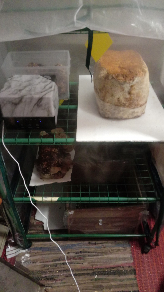 2x Shiitake ,1x Igelstachelbart und ganz unten Steinchampignon 4.Ernte