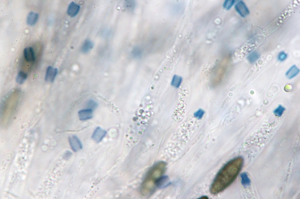 Der Ascoporus reagiert, sowohl in Lugol als auch auf Melzer blau, wobei in Melzer die Reaktion stärker ausfällt.