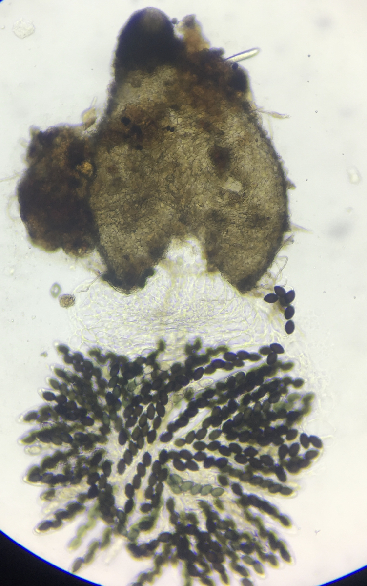 Ich schaue mir hier eine Podospora an und komme nicht weiter. Leider ist sie achtsporig und 22-24µm x 14-15µm, was ja öfter vorkommt. Das Pedicel ist sehr lang, über 80µm oder so. Das ganze wächst in Hirschlosung und das Perithecium (450-650) ist oft bis zum Hals versenkt. Ich dachte erst P. ellisiana, aber ich sehe keine Haare oder apikalen Ring. Für Schizothecium miniglutinans fehlen die Squamufolien. Kommt jemandem die Sache bekannt vor?