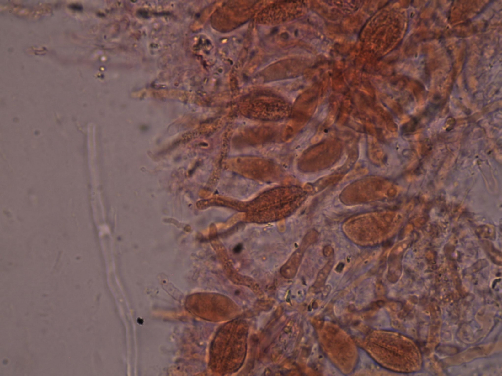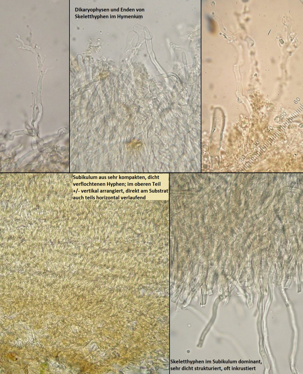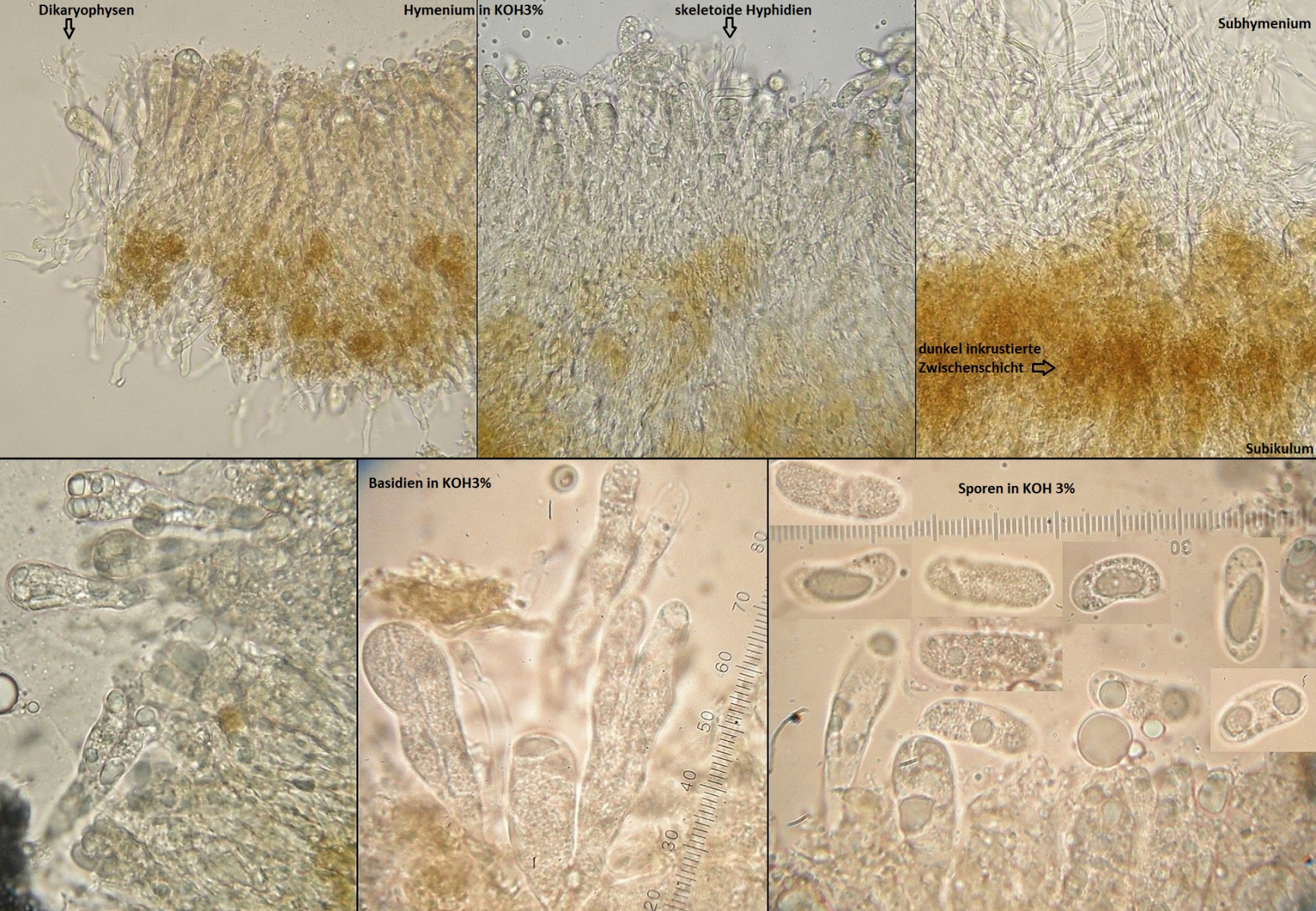 bei dem ersten Pilz dachte ich erst ich hätte mir Sporen und Basidien von einem Drüsling eingefangen, bis ich gesehen habe, dass auch Wachskrusten solche Formen aufweisen.