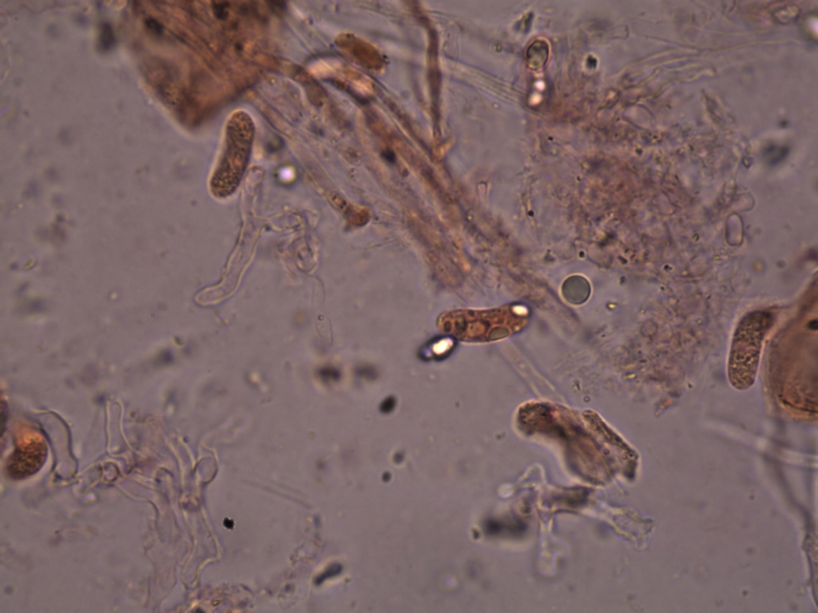 Mikroskopisch konnte ich nicht wirklich was sehen. Eventuell ein paar Sporen - bin mir aber nicht sicher.