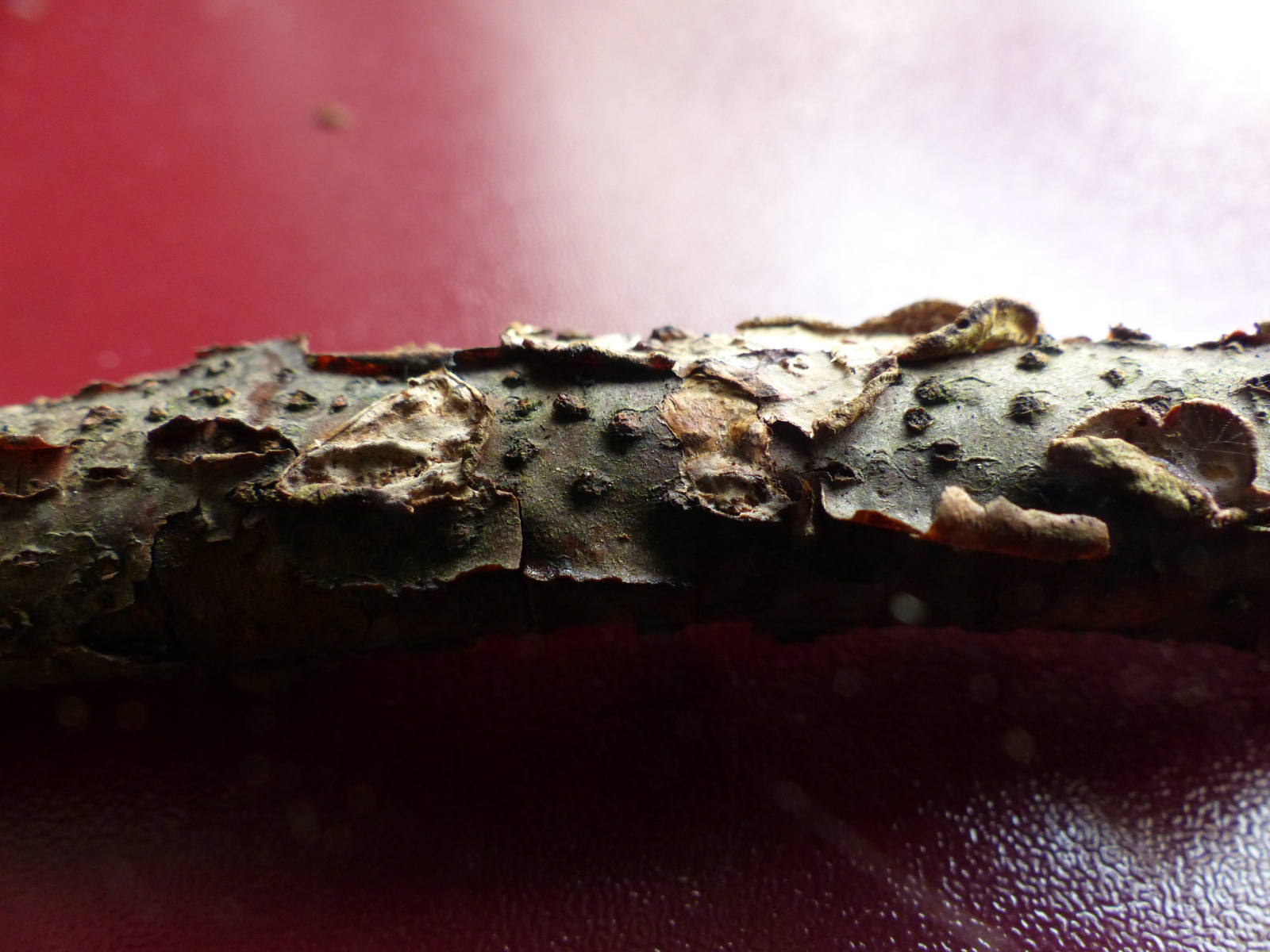Wuchs an einem Laubholz Ästchen. Konsistenz in feuchtem Zustand wachsartig.