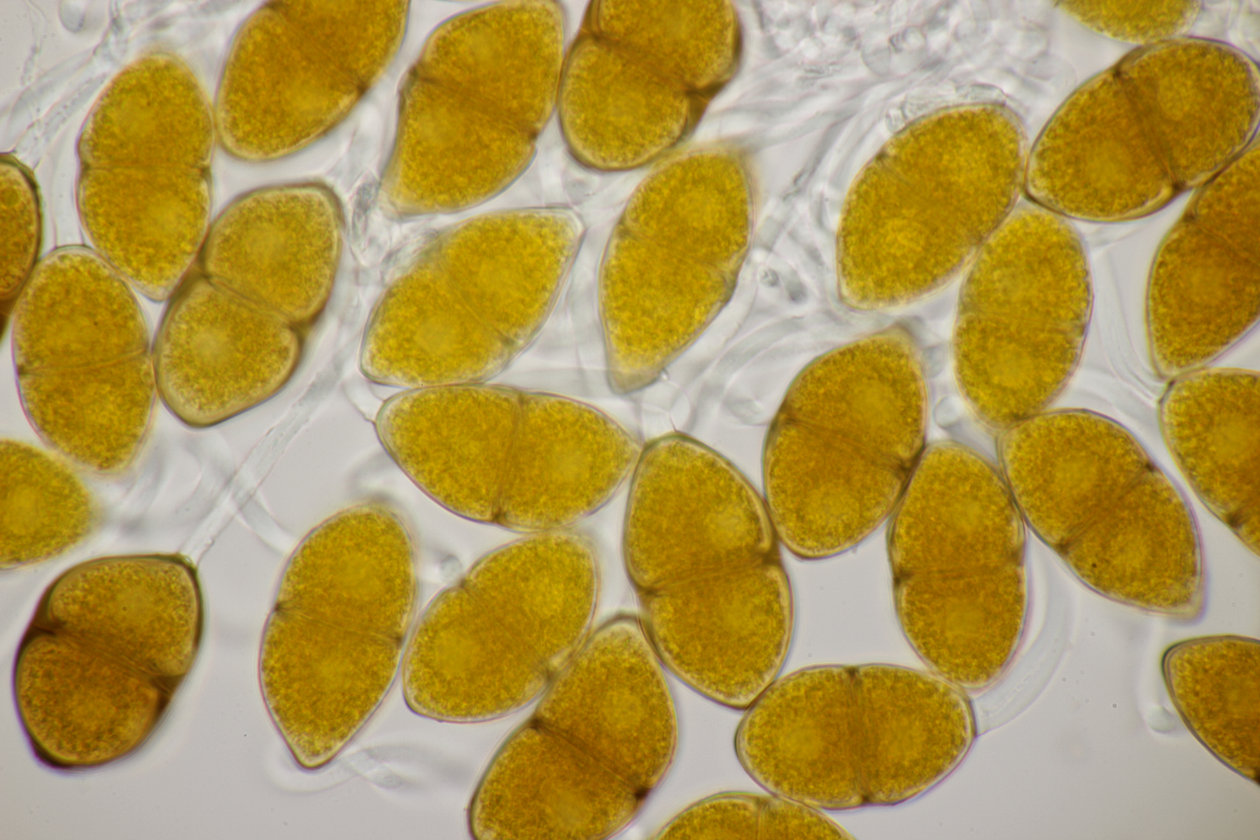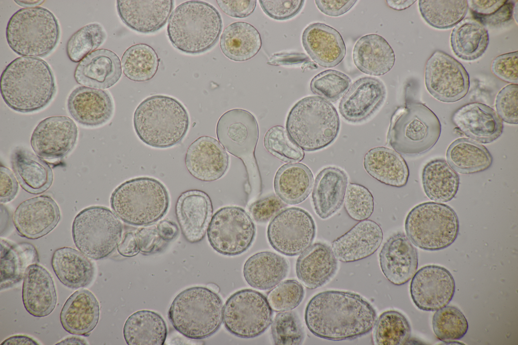 Ich habe mal jetzt die großen Sporen gemessen - also die mit 2 großen Blasen ohne Inhalt.