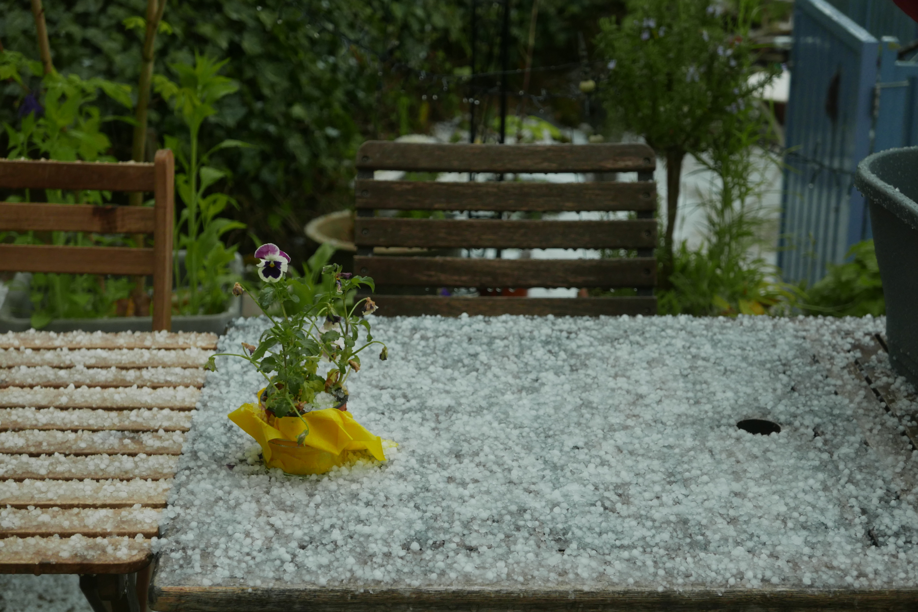 Nach fast 5 Wochen Sonne hab ich den Stuhl heute einfach im Regen vergessen...