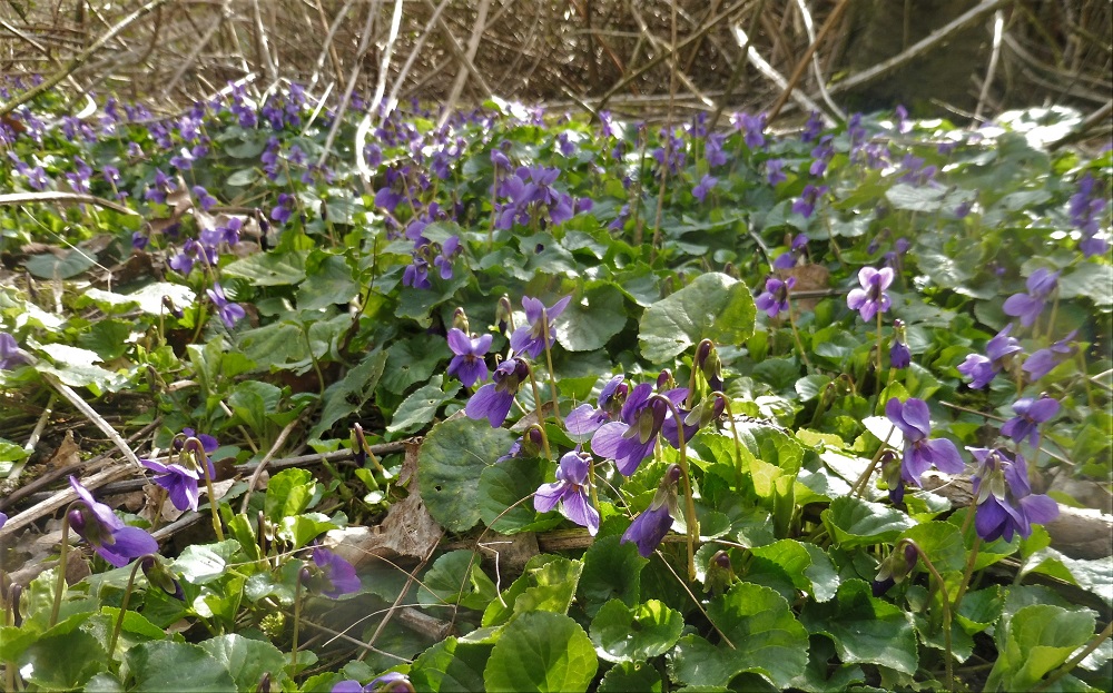 Auf der vorigen Seite sind das leider keine Veilchen, sondern wilde Stiefmütterchen, sind aber verwandt mit Veilchen. Ich habe Anfang des Monats eine Menge Duftveilchen, ganze Teppiche davon gefunden. Die riechen so wunderbar.