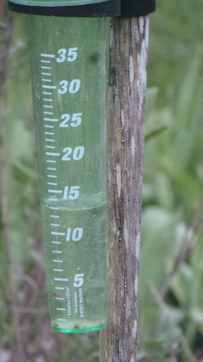 Immerhin fielen bei uns seit Dienstag 20 l Wasser. (Wobei ich glaube, dass der massenweise Hagel bei der Messstation nicht unbedingt auch heruntergekommen sein muss.)