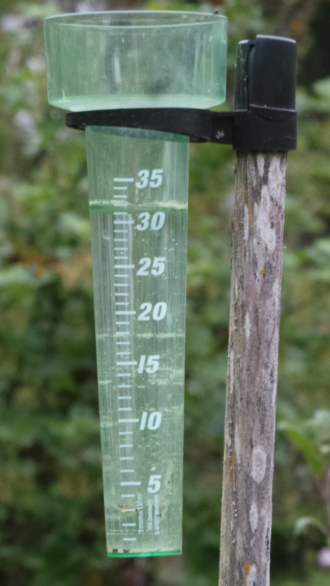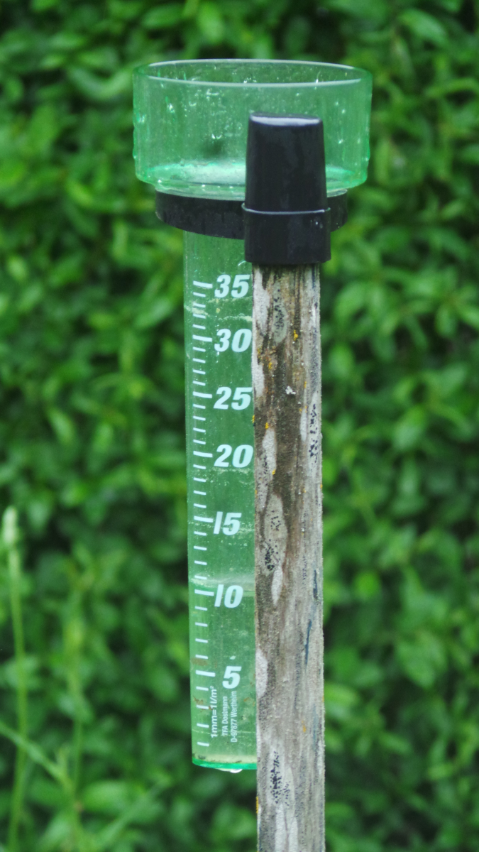 32 Liter hören sich sehr geschmeidig an, im Wald erreicht davon höchstens die Hälfte den Boden. Und kann diesen allenfalls 10 cm tief leicht anfeuchten. Wenn der Regen kontinuierlich fallen würde. Bei längeren Regenpausen kommt allerdings immer weniger im Boden an, weil auf dem Weg dorthin schon wieder einiges am mittlerweile voll entwickelten Blattwerk hängen bleibt und auf den Blättern verdunstet.