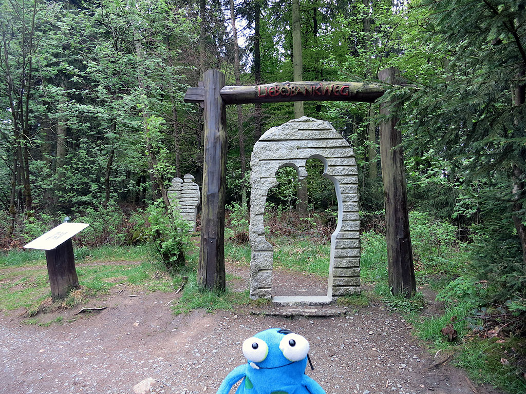 Ich bin den Liebesbankweg entlang gewandert. Es gibt da viele Stationen rund um das Thema Liebe. Hier seht Ihr das „Tor der Liebe“.