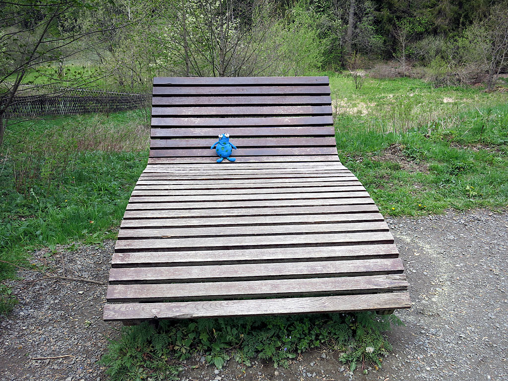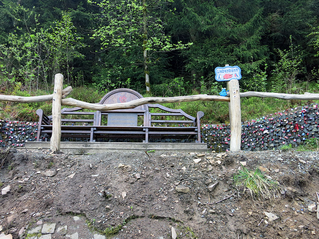 An dem Rundweg stehen über 20 verschiedene Bänke. Hier ist die erste und namensgebende Bank zu sehen. Natürlich wieder mit Gittern für irgendwelche Schlösser aufgestellt. (Sorry, aber ich halte diese Schlösser für eine Unsitte) :girre: