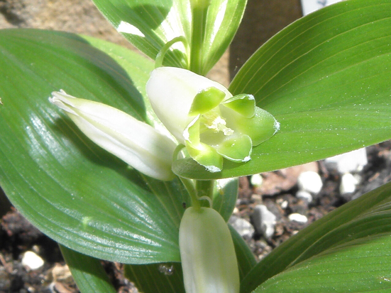 Die einblütige Weißwurz (Polygonatum odoratum) - das echte Salomonsiegel - hat immer nur ein, sehr selten zwei Blüten und sieht so aus: