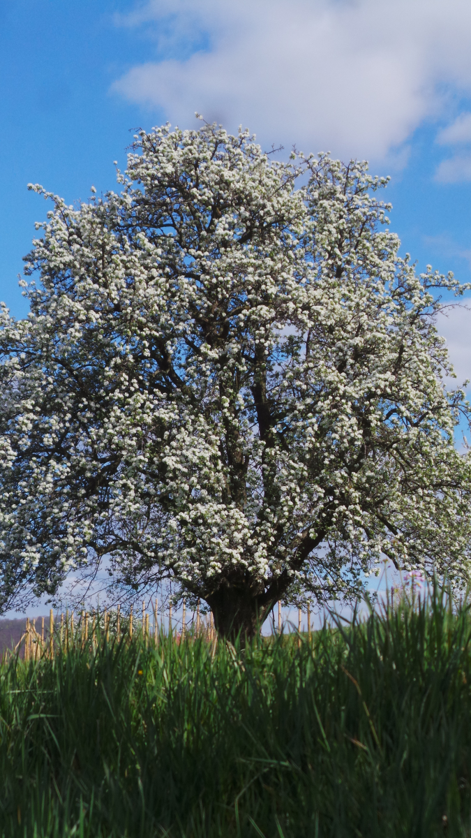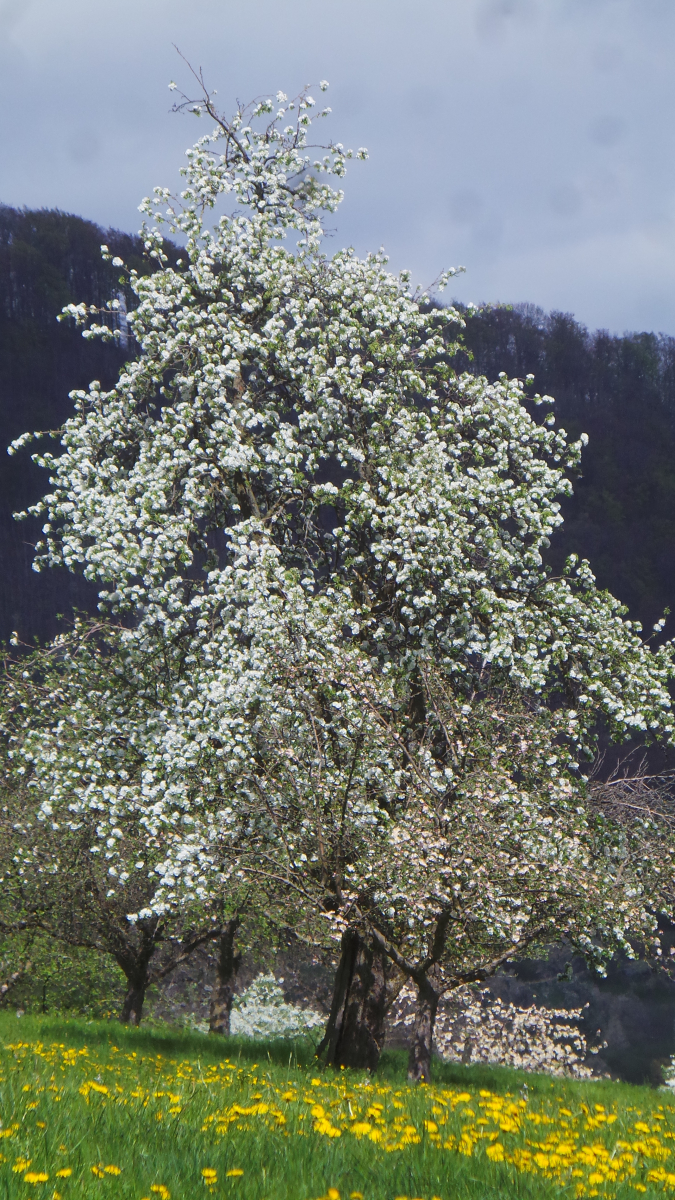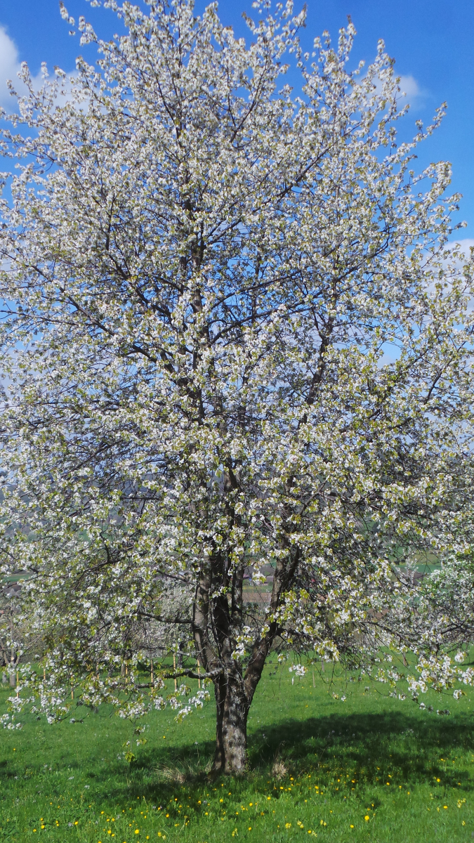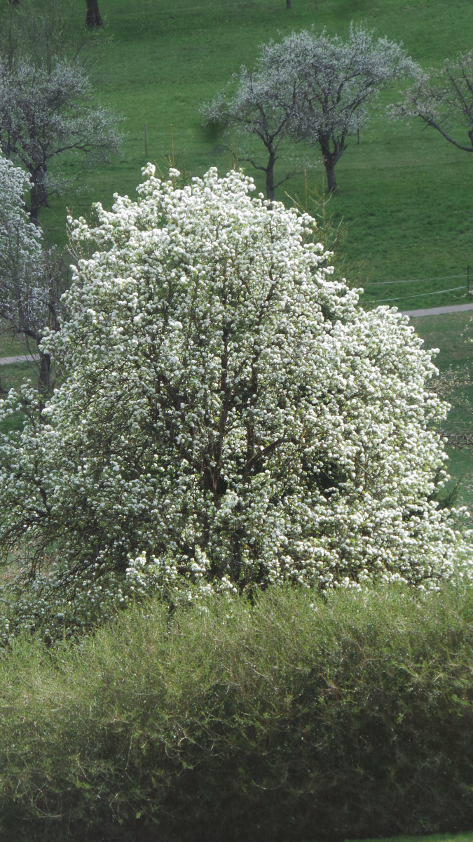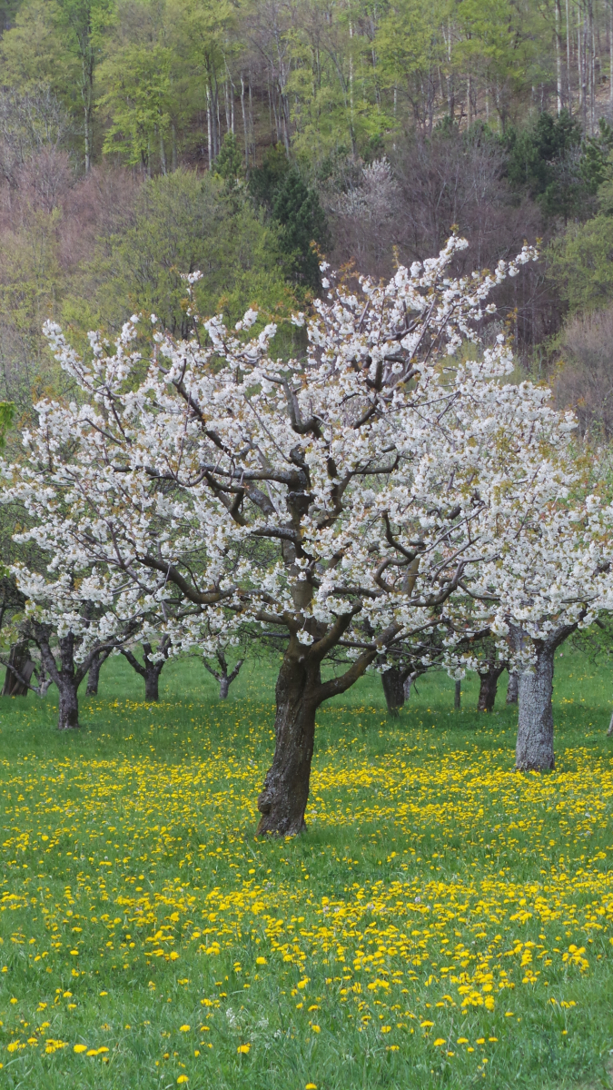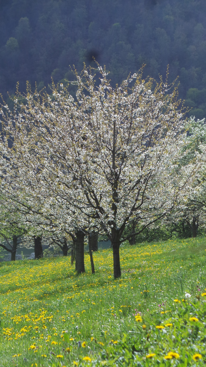 Nun sind in lockerer Abfolge Kirsch- Apfel- und Birnbäume in Vollblüte (teils mit Frostschäden) zu sehen, in der Region Hepsisau/Neidlingen: