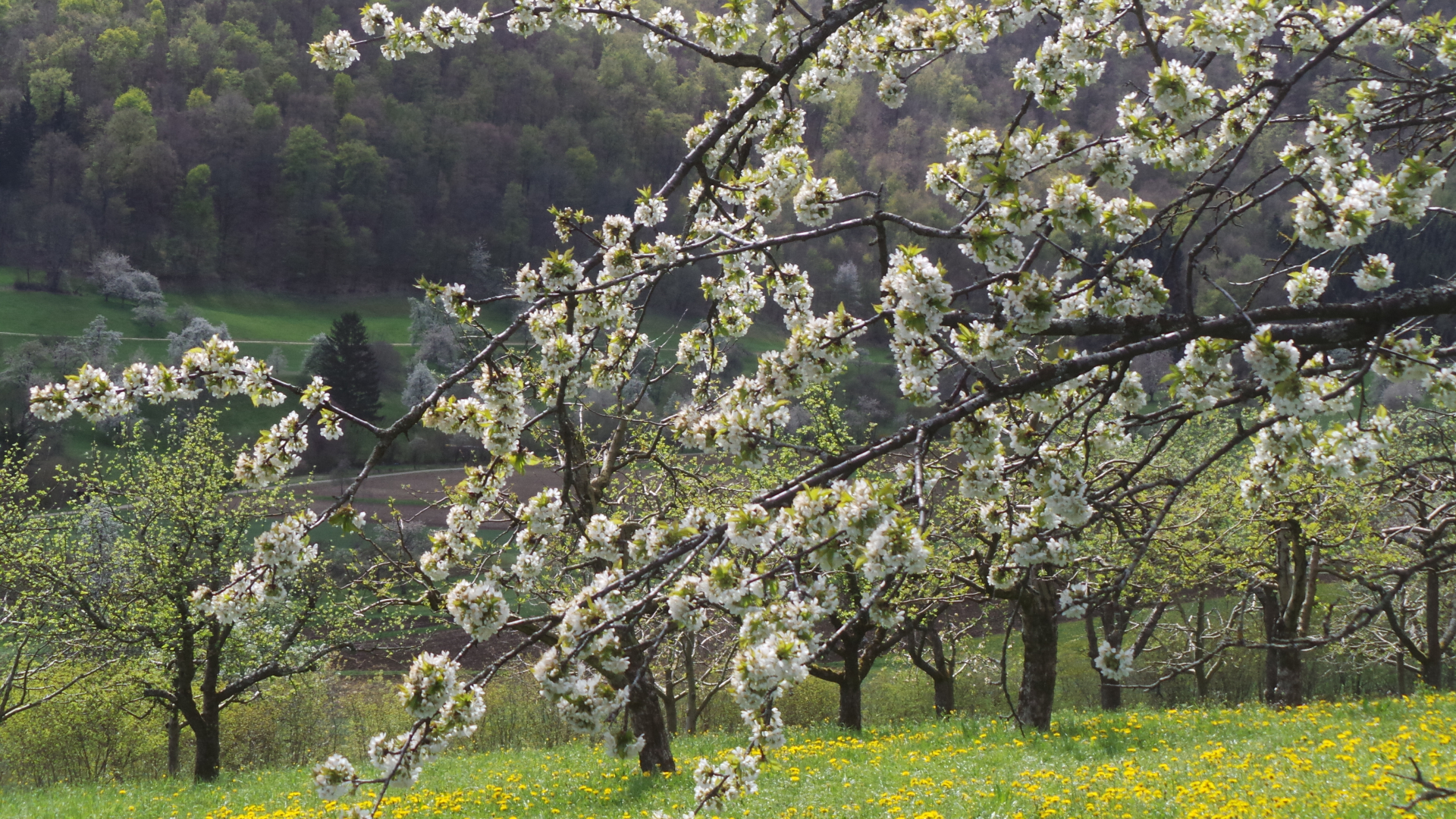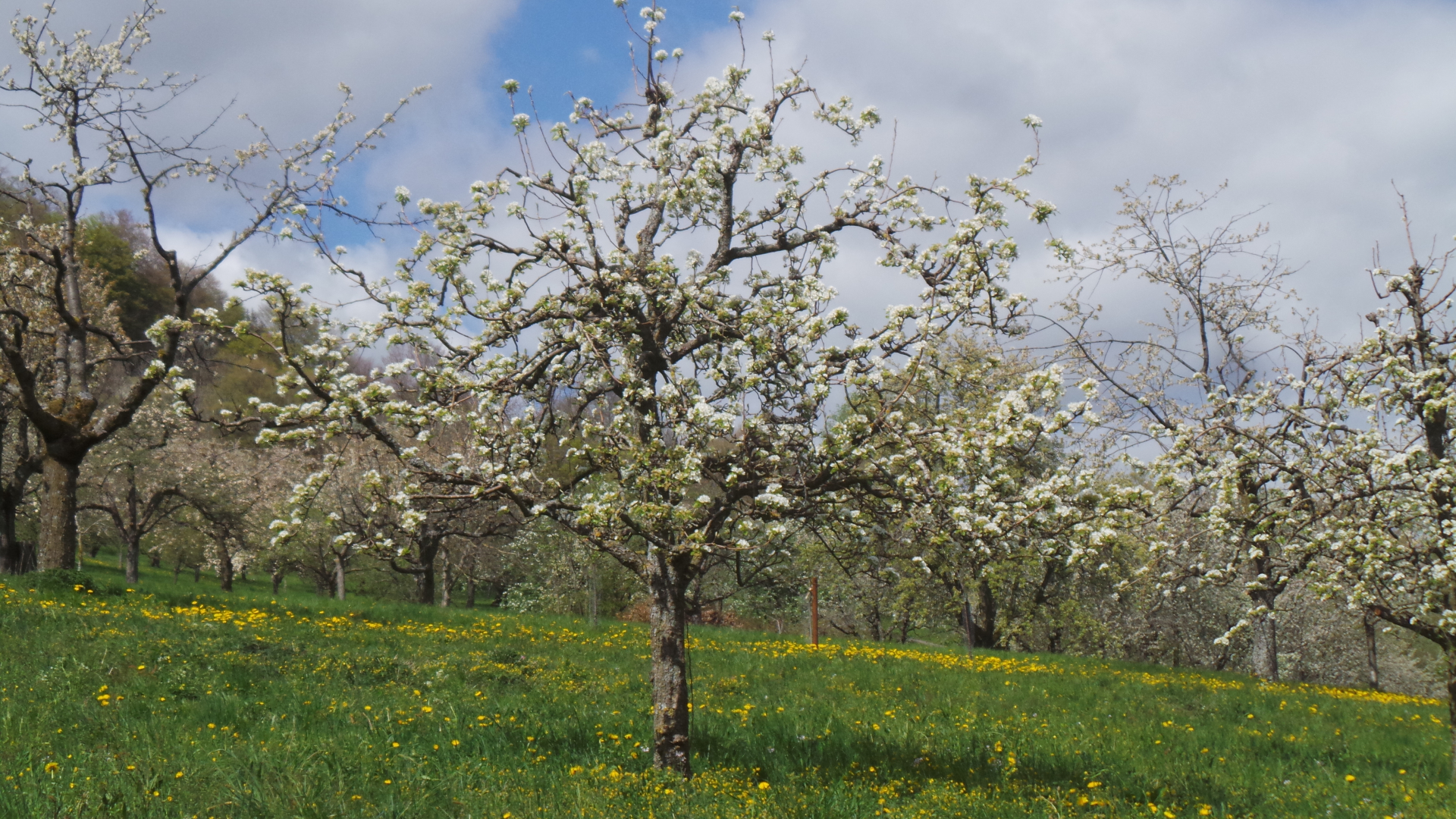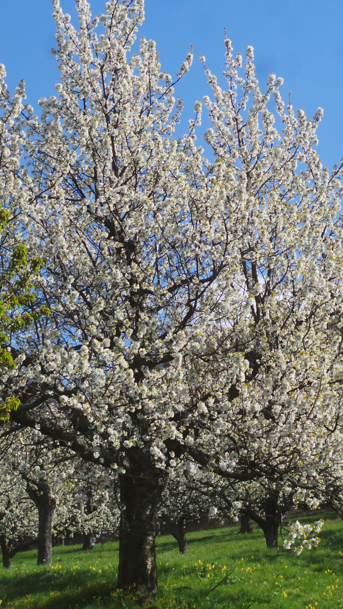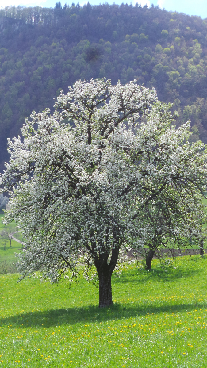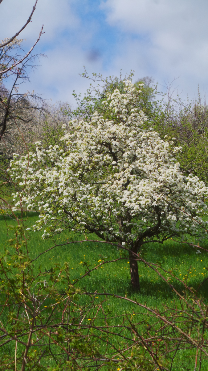 Nun sind in lockerer Abfolge Kirsch- Apfel- und Birnbäume in Vollblüte (teils mit Frostschäden) zu sehen, in der Region Hepsisau/Neidlingen:
