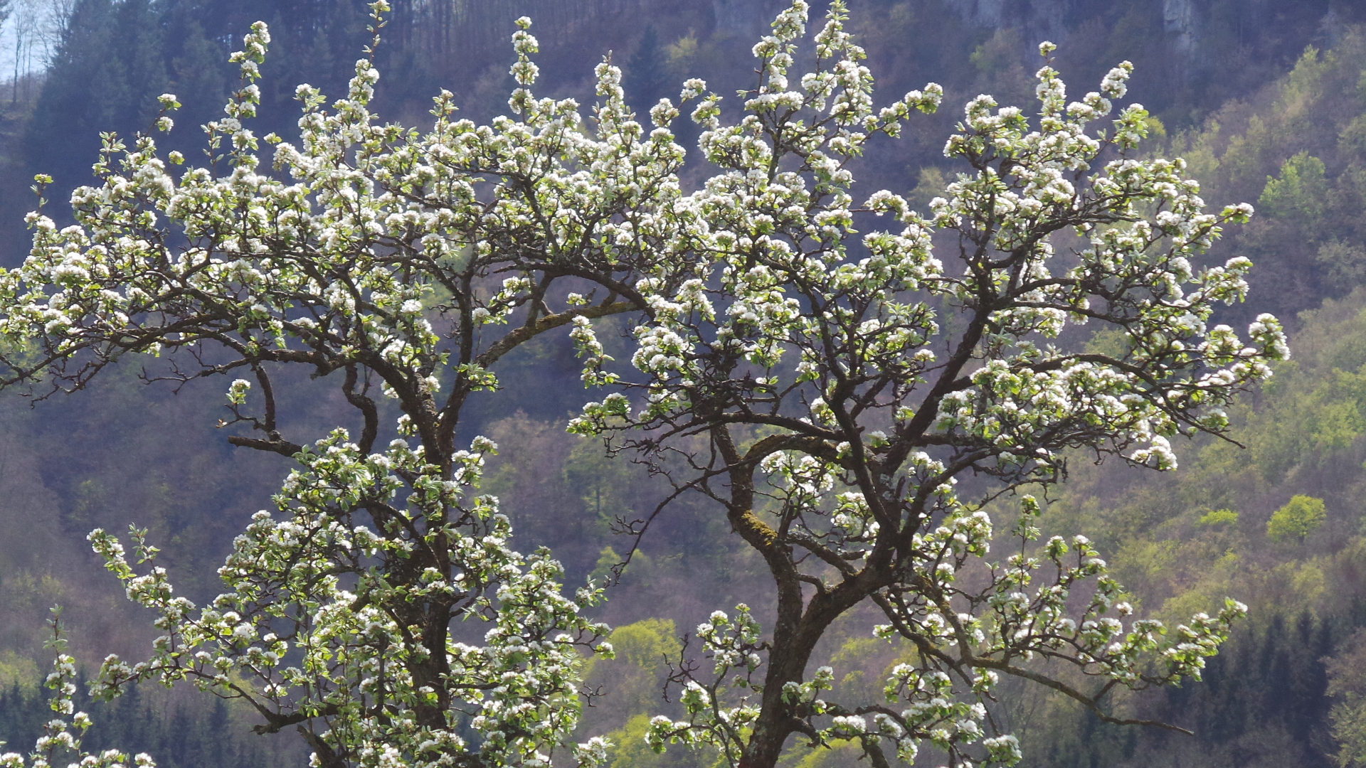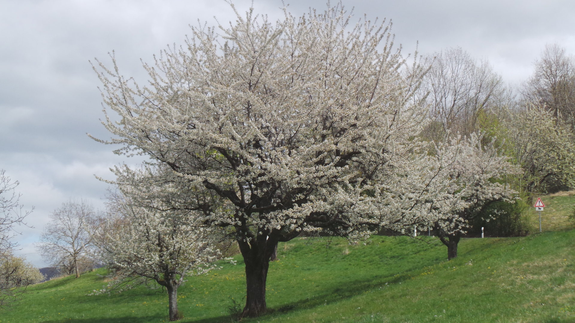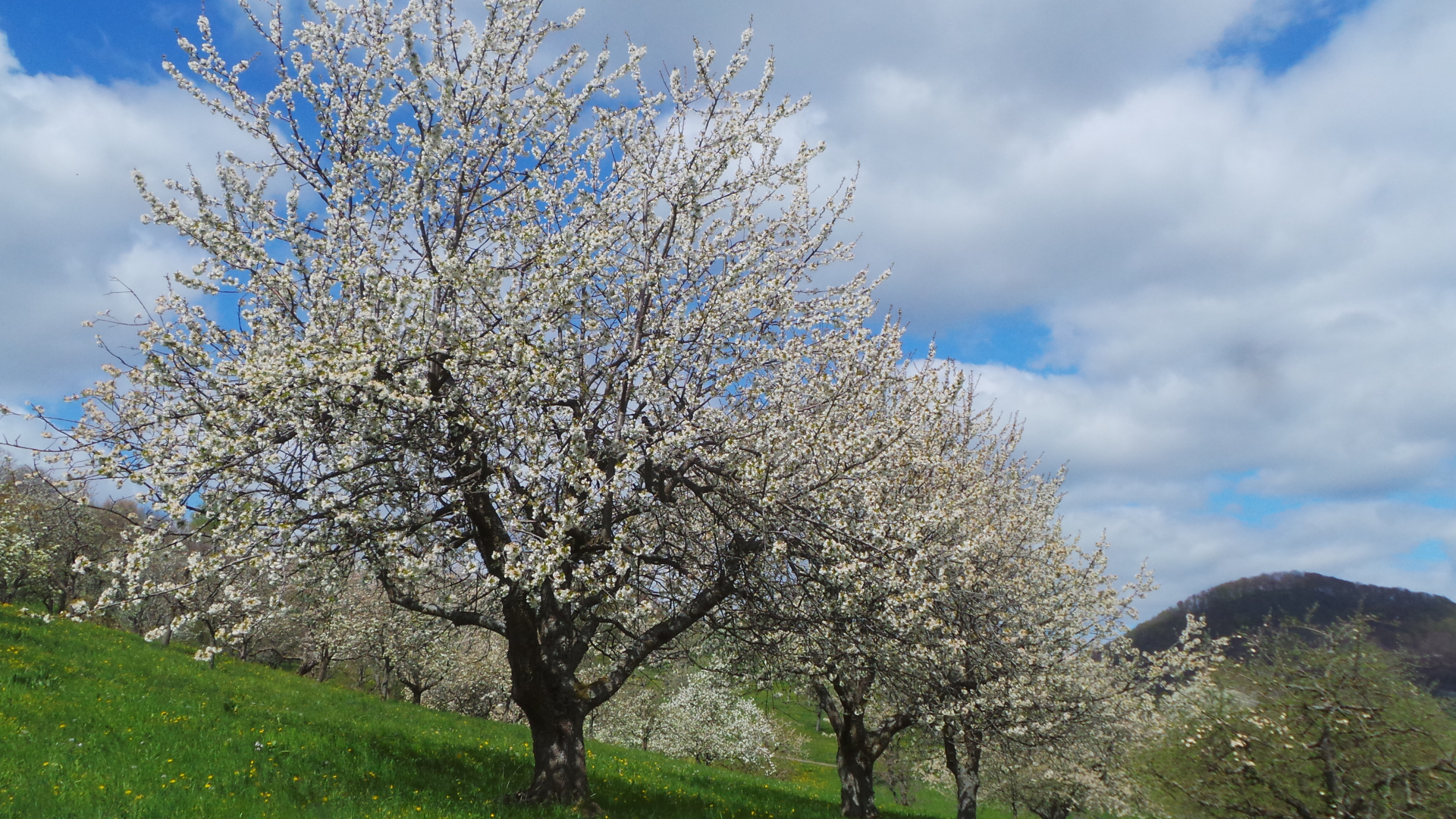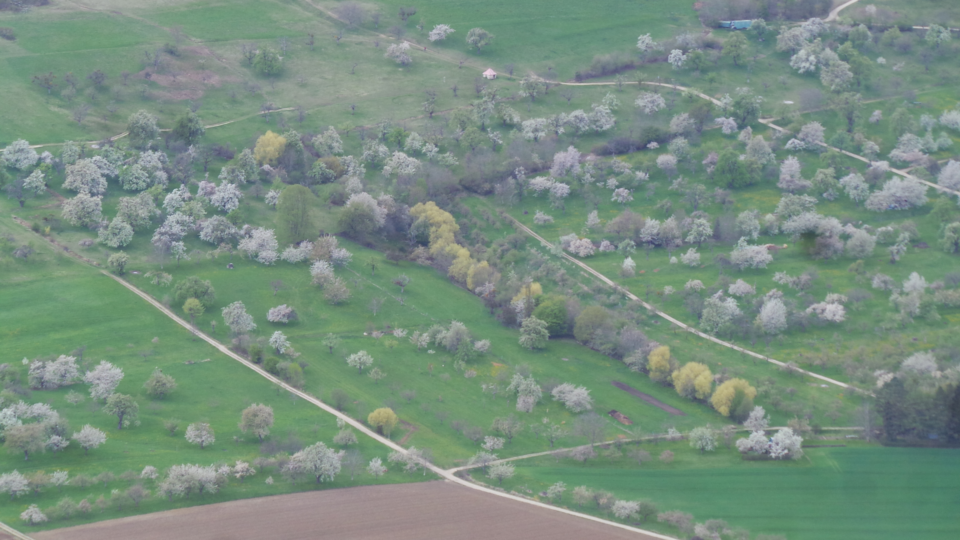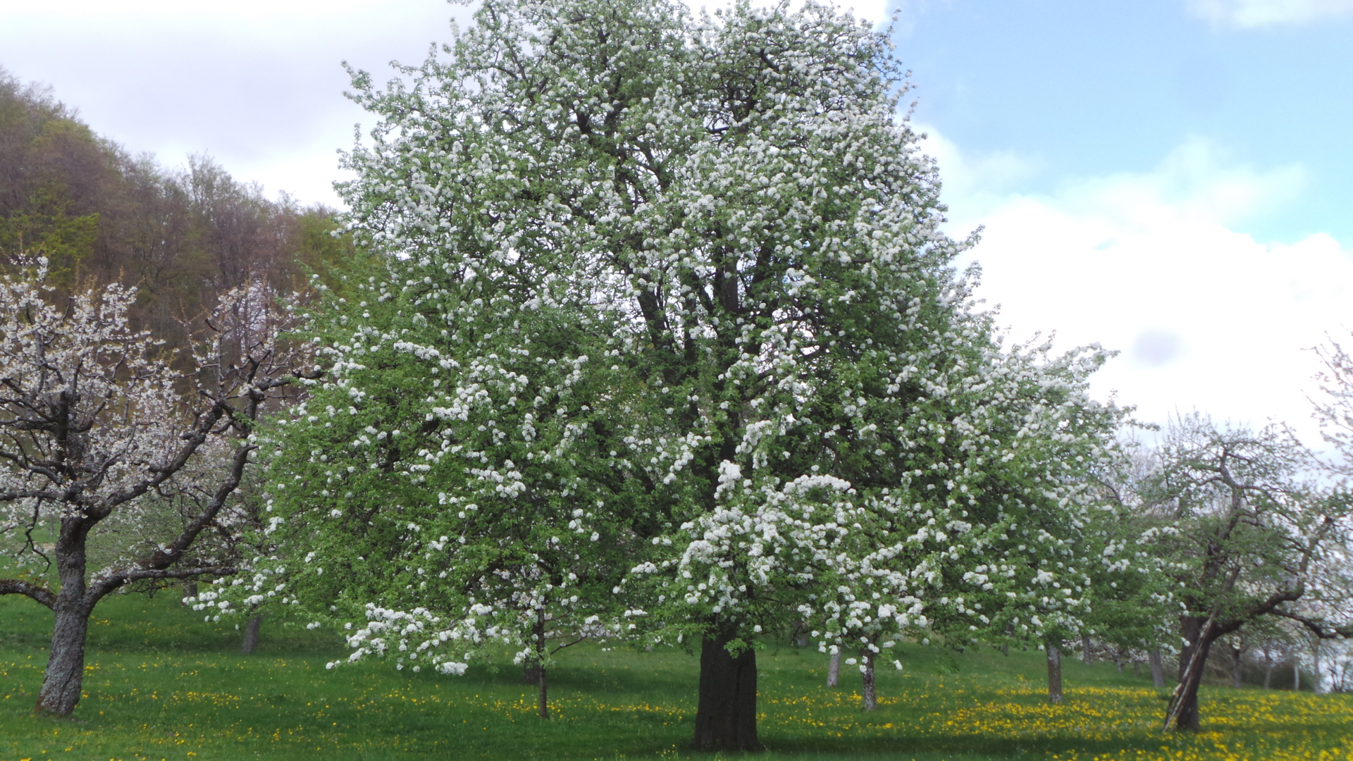Nun sind in lockerer Abfolge Kirsch- Apfel- und Birnbäume in Vollblüte (teils mit Frostschäden) zu sehen, in der Region Hepsisau/Neidlingen:
