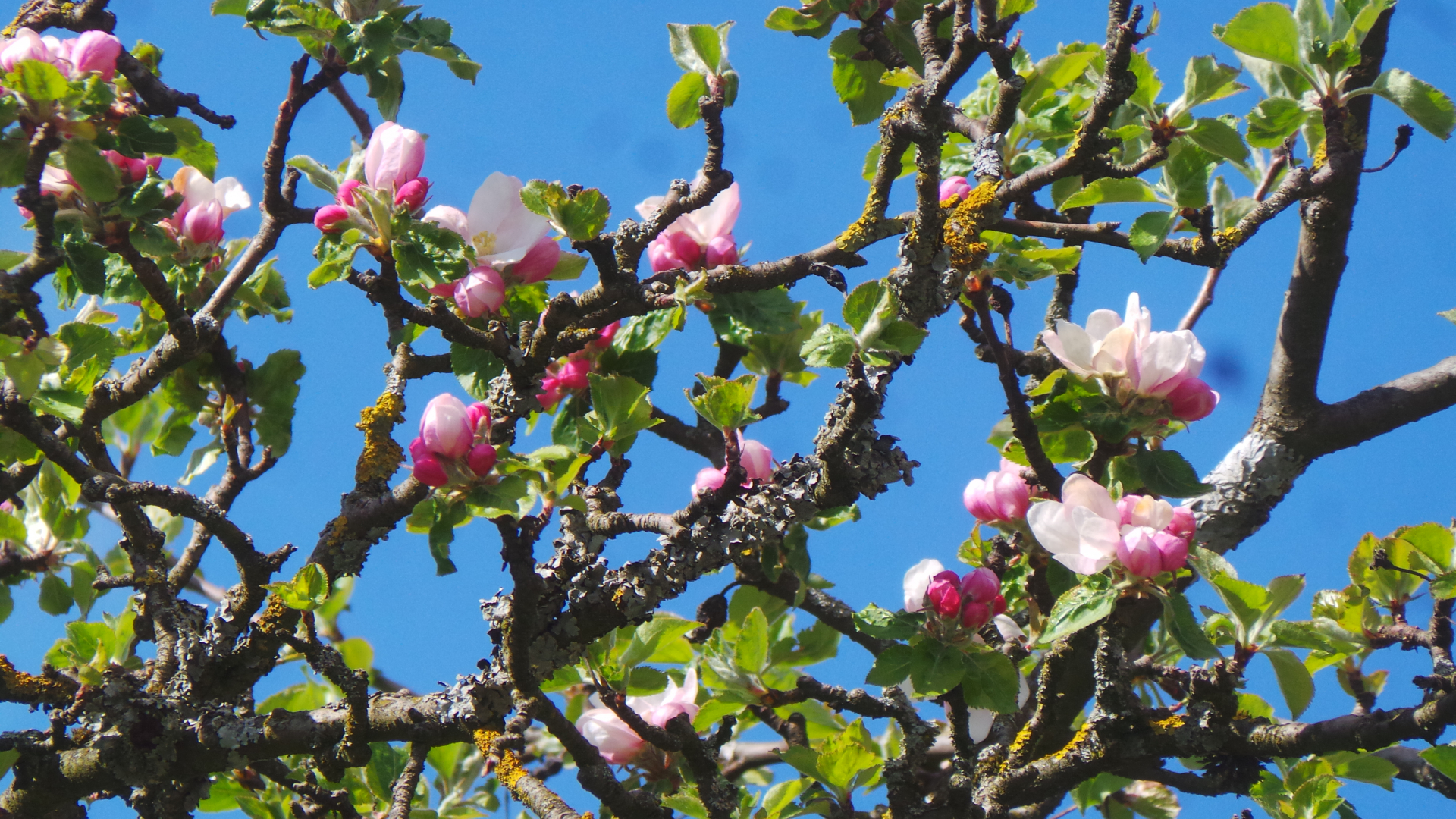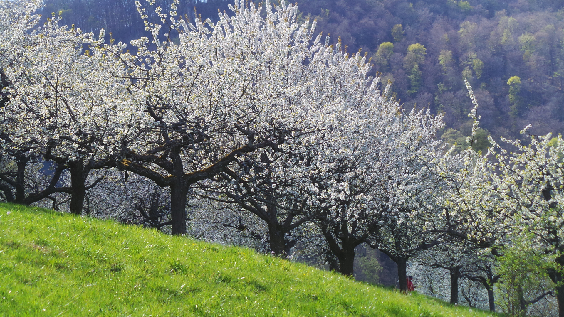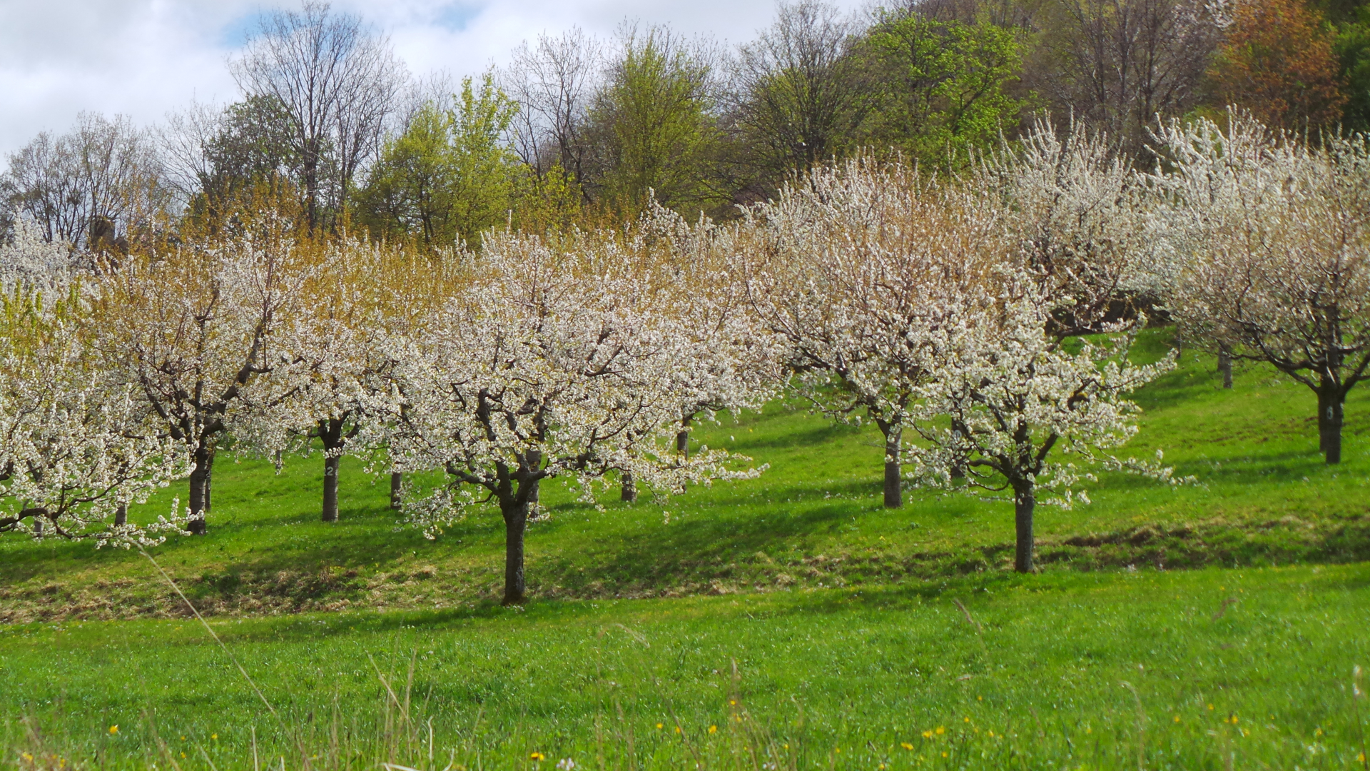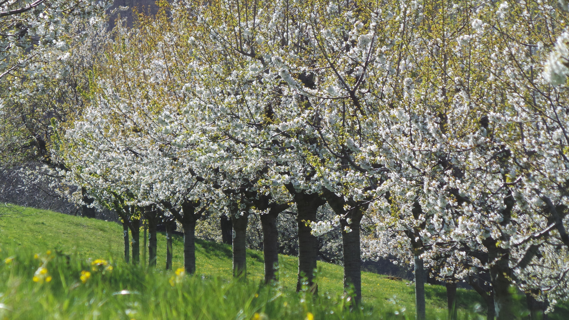 Nun sind in lockerer Abfolge Kirsch- Apfel- und Birnbäume in Vollblüte (teils mit Frostschäden) zu sehen, in der Region Hepsisau/Neidlingen: