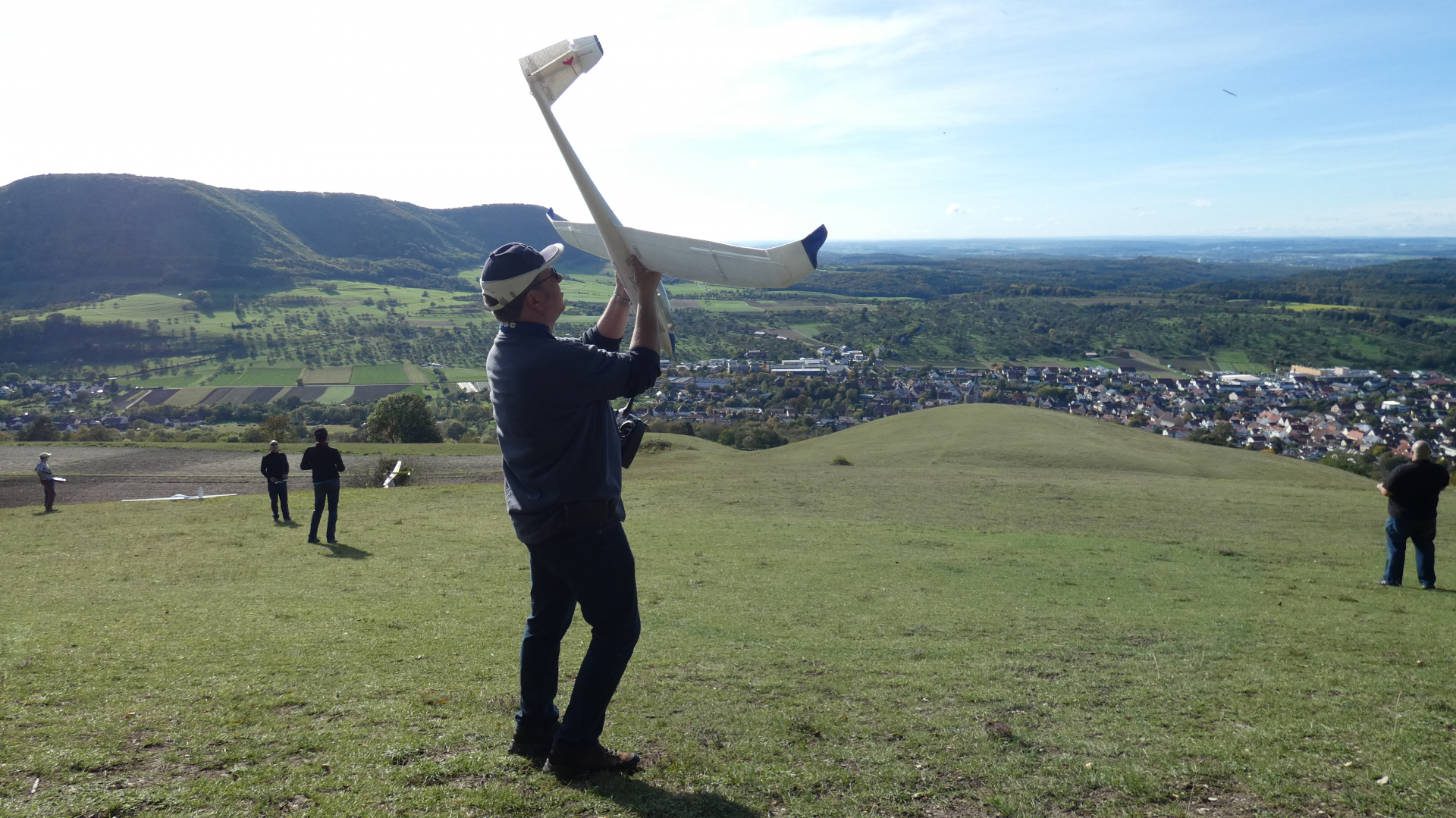 Mr. Grüni, der Flieger, vor dem bombastischen Panorama, ich glaub, am Bölle. Oder war's am Hörnle...