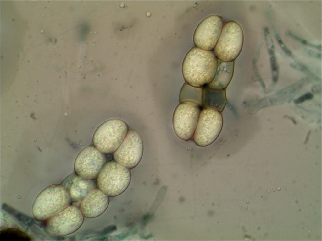 Bild 4 und 5 sind in Chlorazolschwarz aufgenommen, vermutlich sind die Sporen
