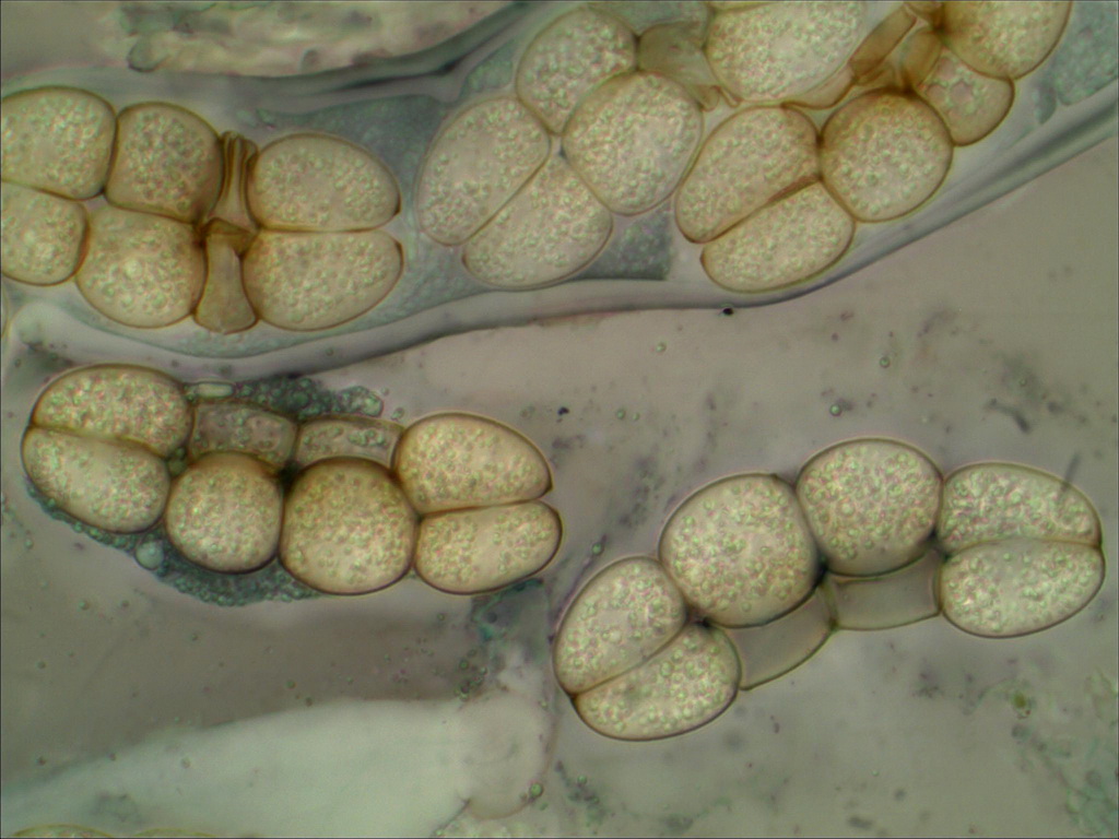 Bild 4 und 5 sind in Chlorazolschwarz aufgenommen, vermutlich sind die Sporen