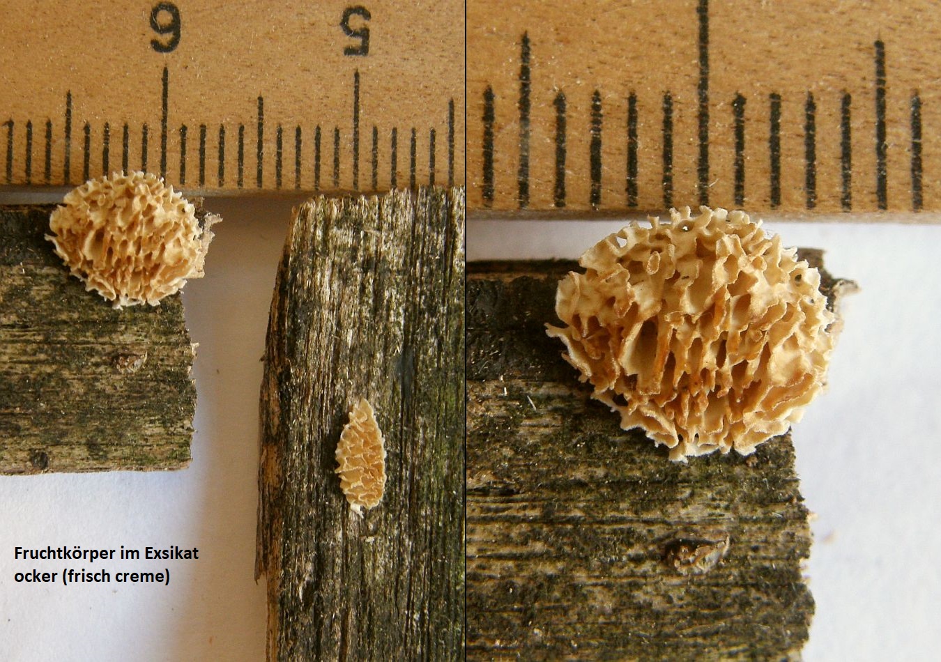 Kurze Beschreibung: Fruchtkörper frisch cremeweißlich - getrocknet blass ocker; Poren frisch 2-4/mm