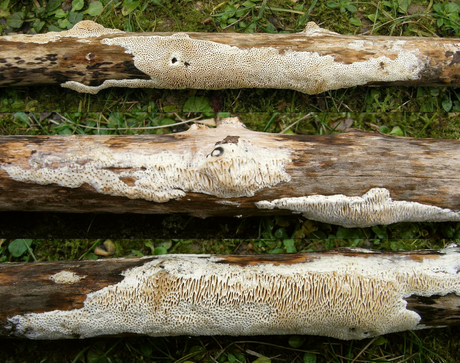• Das, was früher generell als Antrodia albida (an Laubholz) bestimmt wurde, und jetzt wohl Antrodia serpens heißen muss
