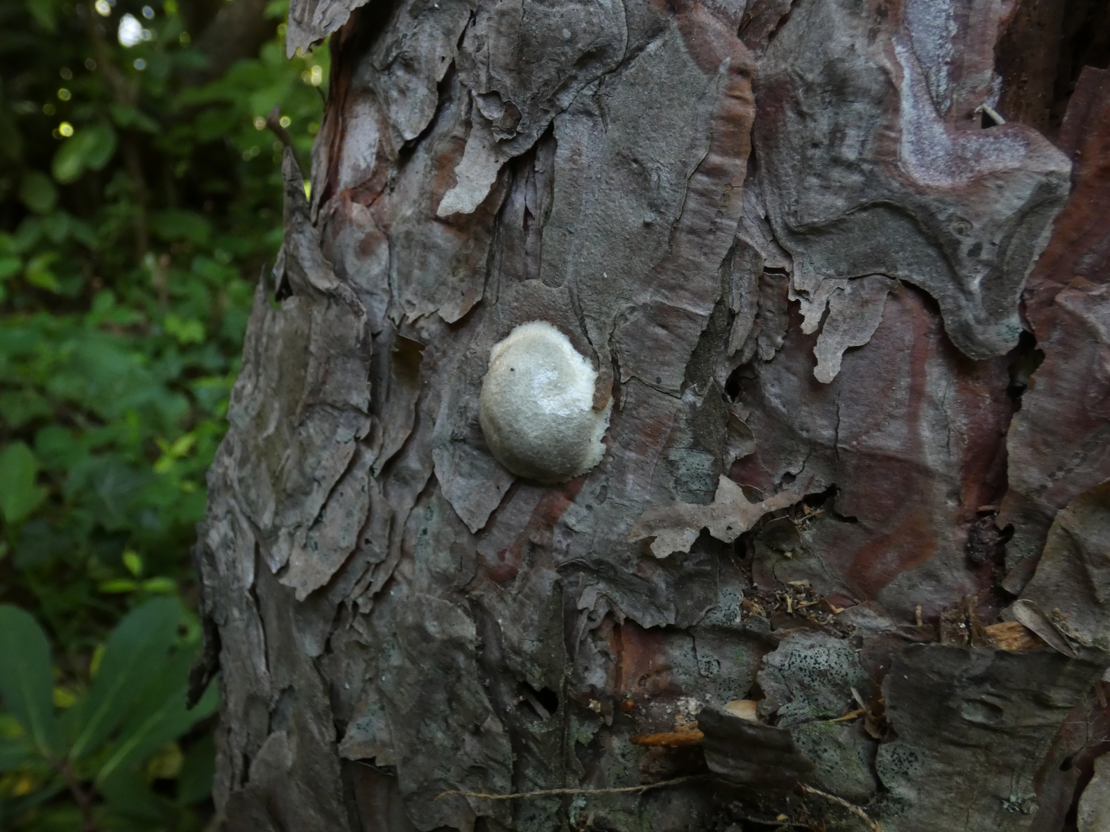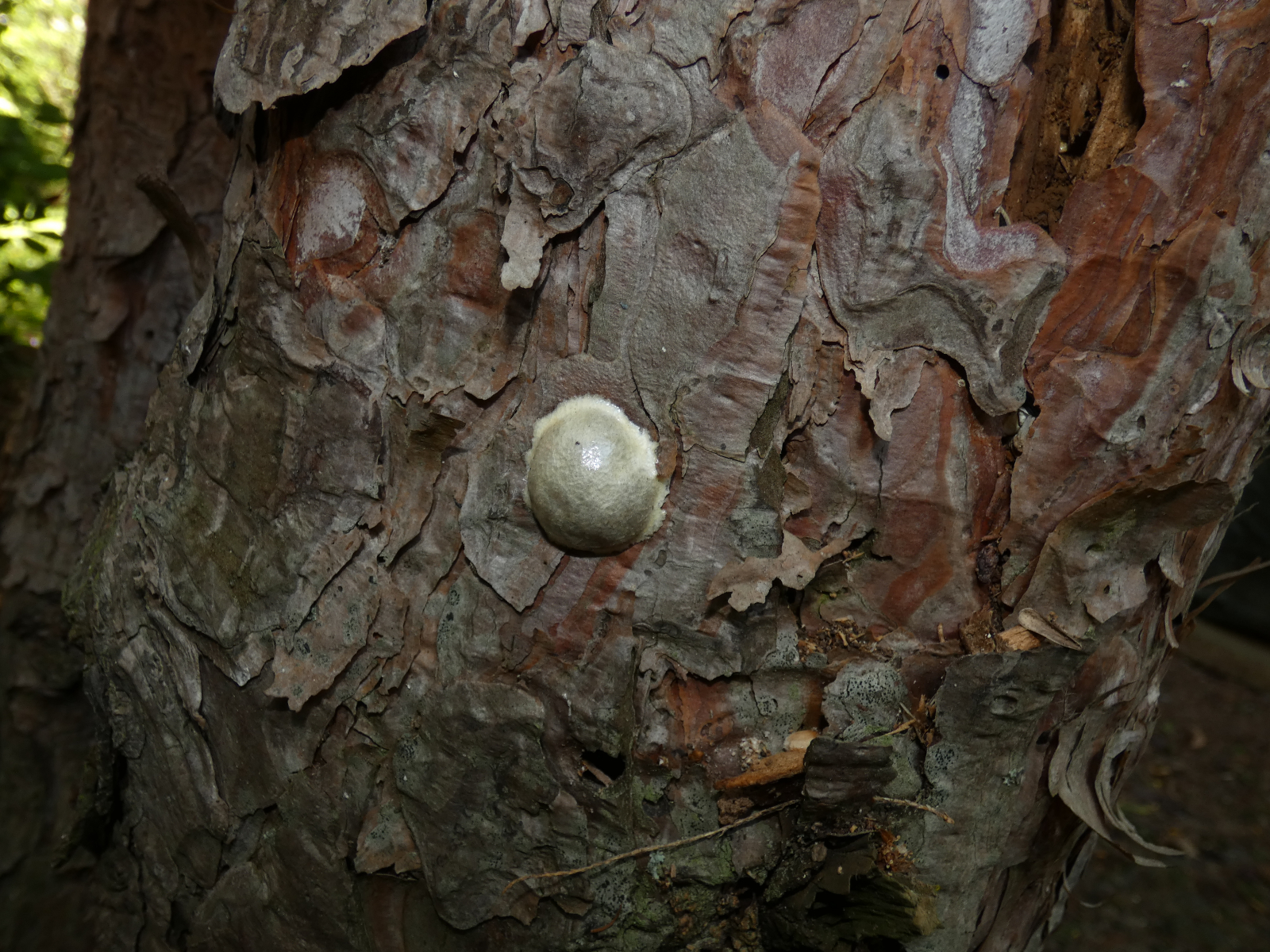 gestern entdeckte ich zwei kleine rundliche, glatte, schmutzigweiße "Bobbelchen" an einem toten Baumstamm, der bei mir im Garten direkt vor der Terrasse steht, und vor ein paar Tagen ein weiteres Exemplar an einem anderen HolzstĂŒck.