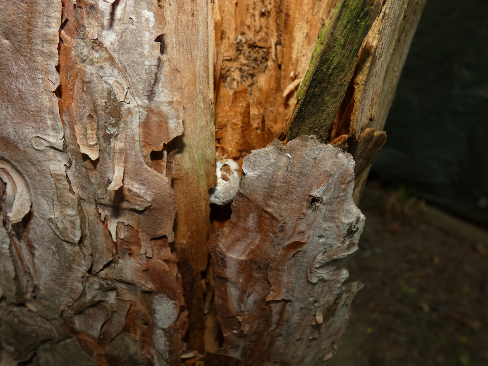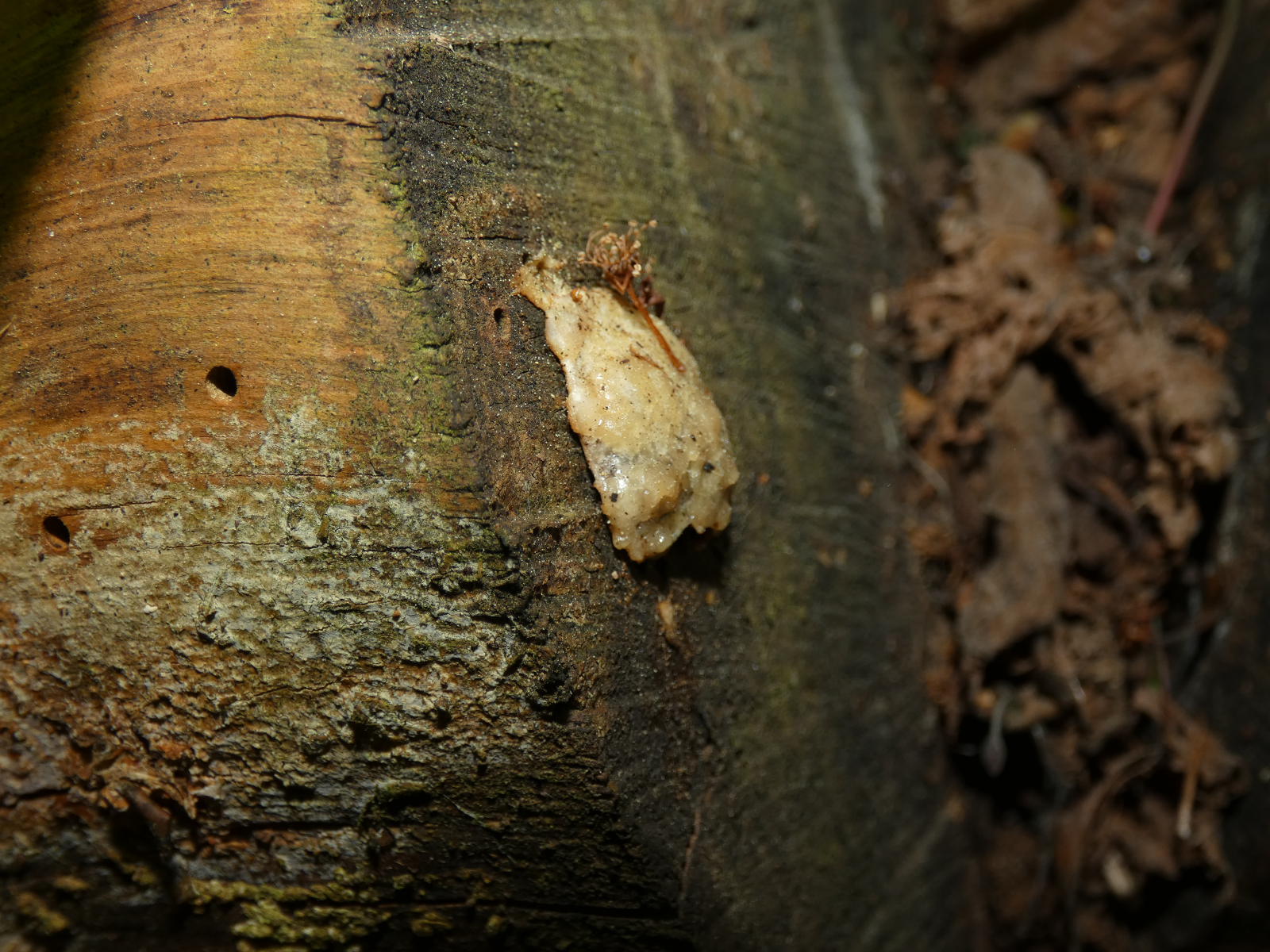 Exemplar 3, schon etwas Ă€lter und unregelmĂ€ĂŸiger geformt, am anderen HolzstĂŒck: