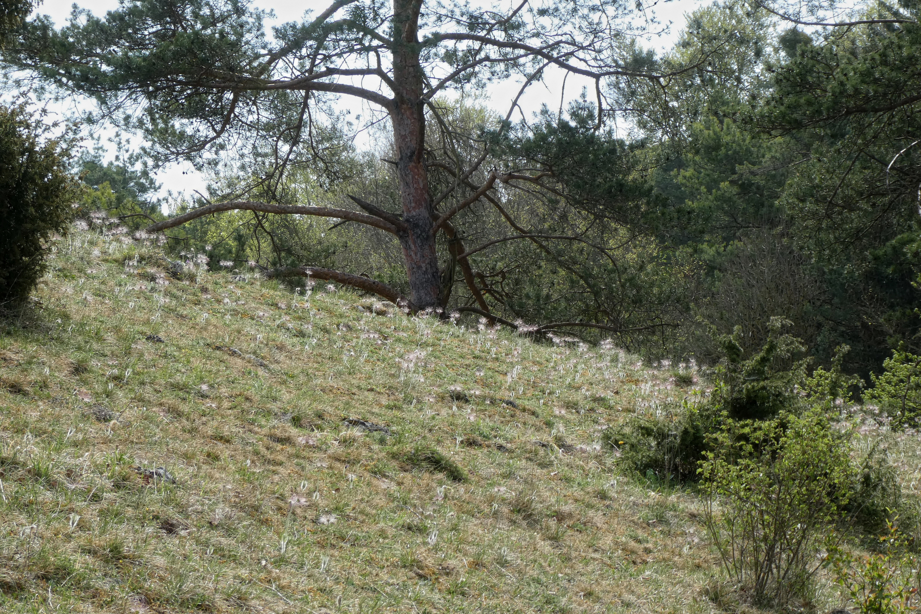 Es ist so schade, dass ich während der Blütezeit kein Foto der blühenden Hänge hinbekommen habe aber hier kann man anhand der verblühten Pflanzen erahnen, dass viele Hänge dicht an dicht mit Küchenschellen bewachsen sind.