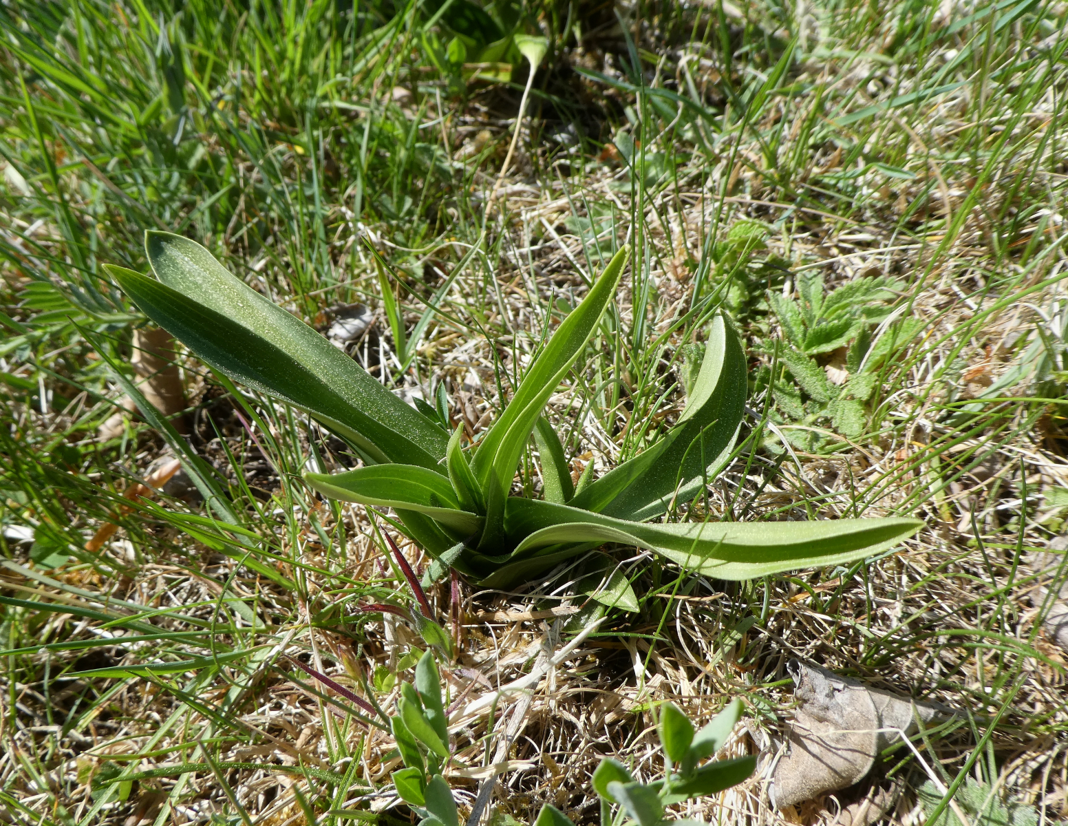 Das Brand-Knabenkraut (Neotinea ustulata) dessen Blätter man kaum sieht. Ich hoffe sehr in diesem Jahr die Blüten fotografieren zu können.