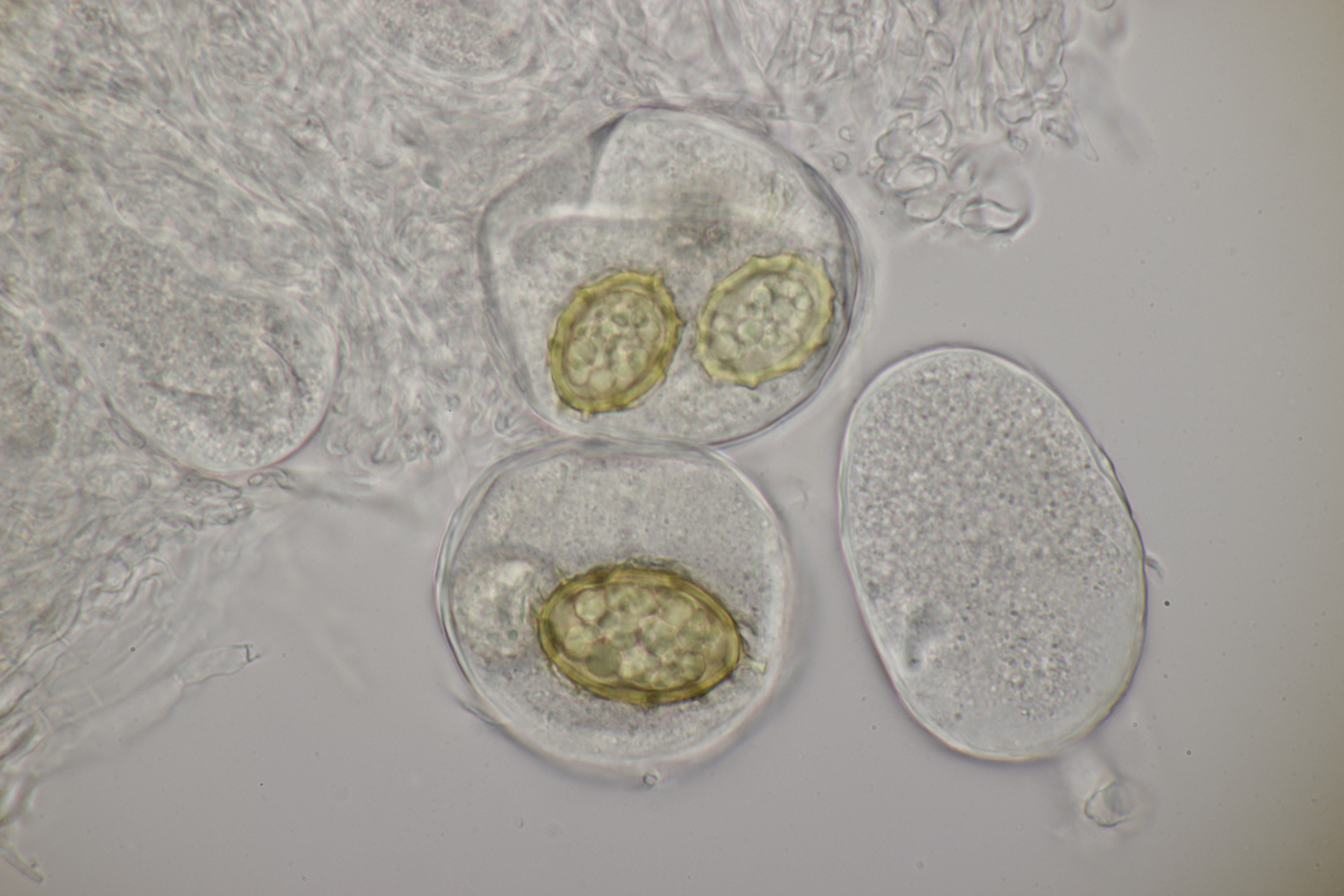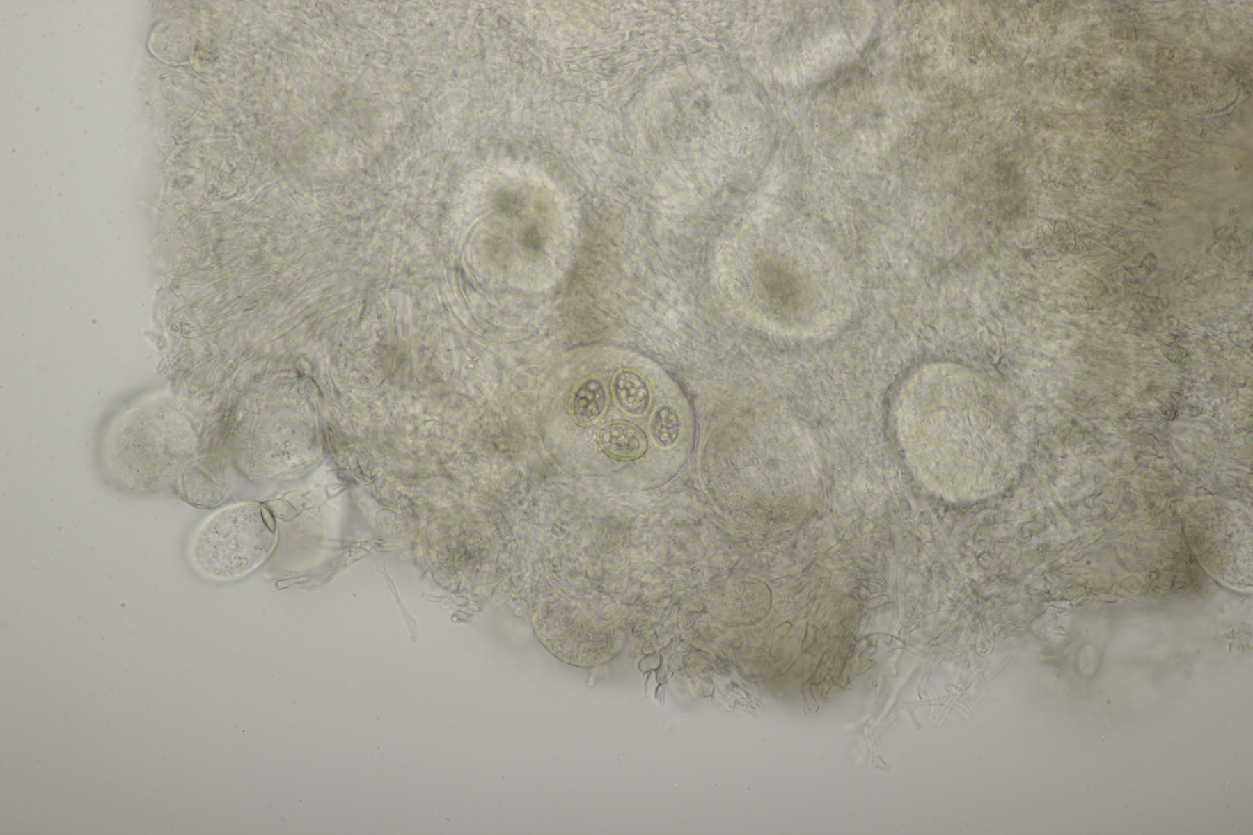 erst mal einen herzlichen Dank an Berthold, der mir eine Trüffel zugeschickt hat. Diese ist gestern bei mir eingetroffen und sofort unters Mikroskop gewandert. Es sind zahlreiche runde bis elliptische Asci zu erkennen, die 2-4 Sporen enthalten. Jung sind die elliptischen Sporen hyalin, werden im Alter aber braun. Die Sporen sind (25-34) µm x (18-23) µm groß und haben ein netzförmiges Ornament, durch die Waben mit einer Größe von ca. 13 µm x 6 µm definiert werden. Alles in allem haben wir hier also tatsächlich Tuber aestivum vorliegen.