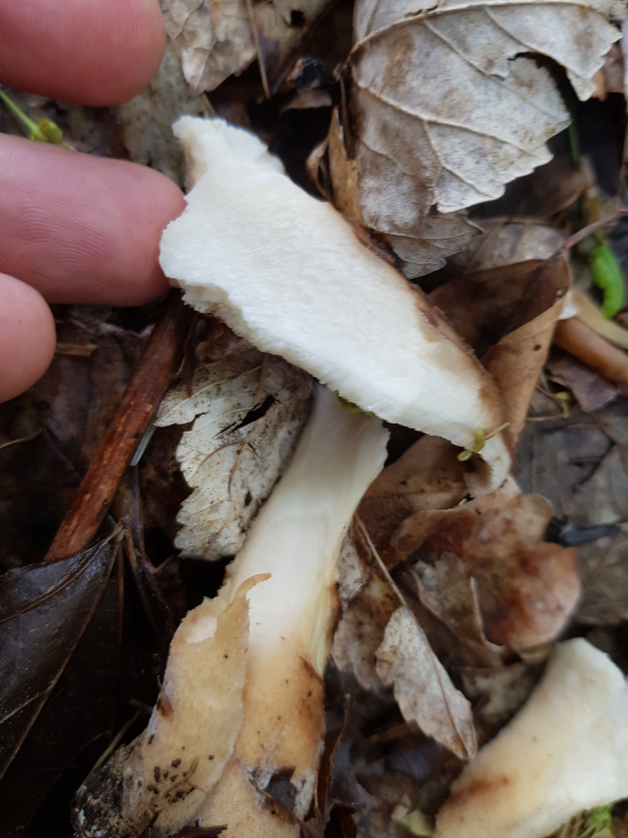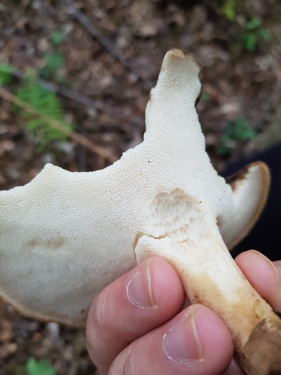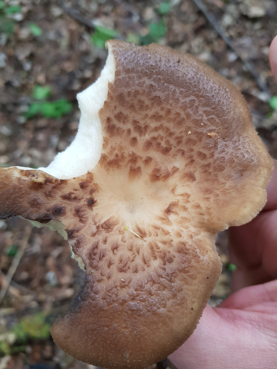 ich habe heute einen hübschen Pilz gefunden. Ich hab ihn mir näher angesehen weil ich erst die Hoffnung hatte das es vielleicht ein Habichtspilz sein könnte. Allerdings hat er unten Poren und keine Stacheln. Der Geruch ist angenehm pilzig, mit der Zeit aber fast aufdringlich, ähnlich wie bei Nebelkappen. Gefunden habe ich ihn als einzelnen Pilz unter Buchen.