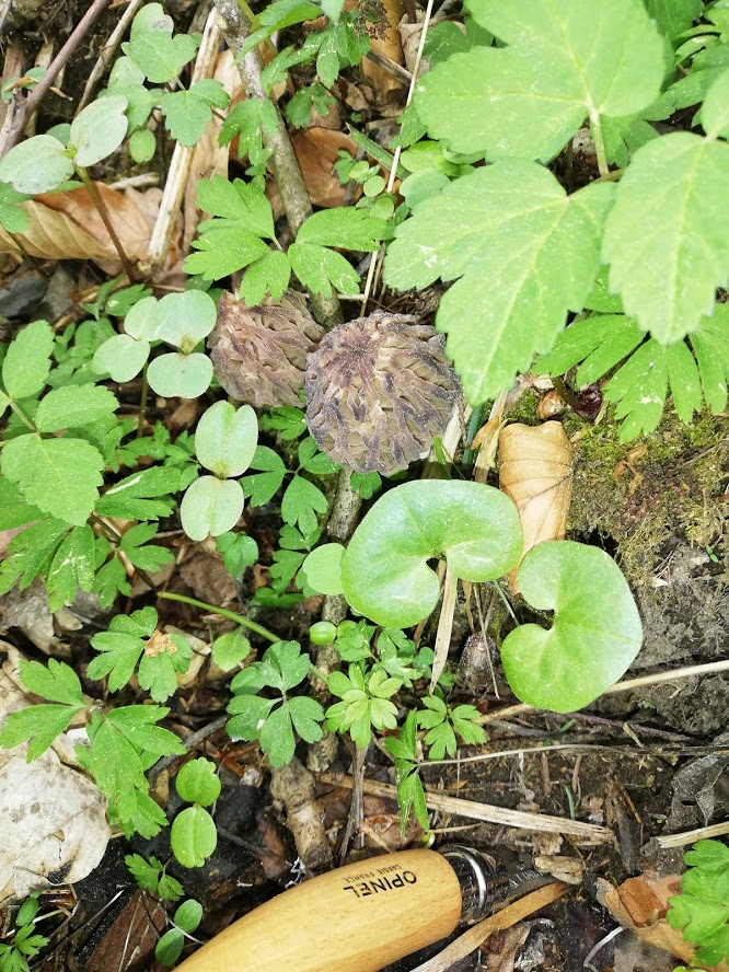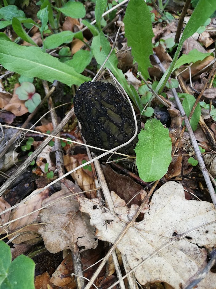 Auf dem Weg zum Speisemorchelplatz, im Umkreis eines Holzlagerplatzes mit viel Fichtenrinde, gabs dann einige Spitzmorcheln (Morchella conica s.l.) zu finden.