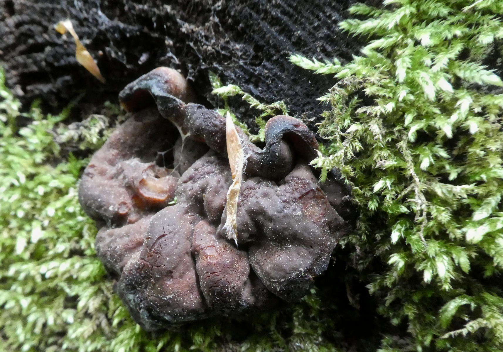 Funddaten: 03.05.2020, Altmühltal, Hahnenkamm, sehr kalkhaltig, Mischwald mit überwiegend Laubbäumen, darunter Buchen, Eschen und Fichten. An der Schnittstelle eines am Boden liegenden Baumes - welcher Baum dies war kann ich nicht sagen. Durchmesser des Pilzes aus der Erinnerung ca. 5 cm. Die Konsistenz war weich, elastisch. Kein Geruch.