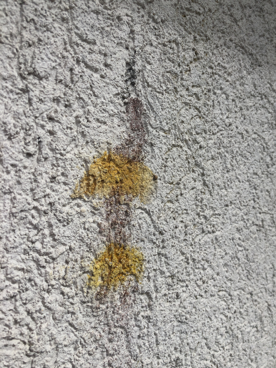 im Rahmen von Dachdeckerarbeiten sind wir dabei, die Fassade zu reinigen. Vom Kärchern wird ja allgemein abgeraten, also schrubben wir mit Seifenwasser von Hand. Das funktioniert recht gut. Nach einiger Zeit bekommt man Algen, Flechten und Dreck ganz gut ab. Aber eine (vermutlich) Flechtenart erweist sich als überaus hartnäckig und diese hat auch noch die unangenehme Eigenschaft, dass sie färbt. Kräftig gelborange und zwar nachhaltig. Die Farbe bekommt man kaum weg. Kennt jemand von euch dieses Gewächs und hat eine Ahnung, wie sich der Farbstoff neutralisieren lässt?