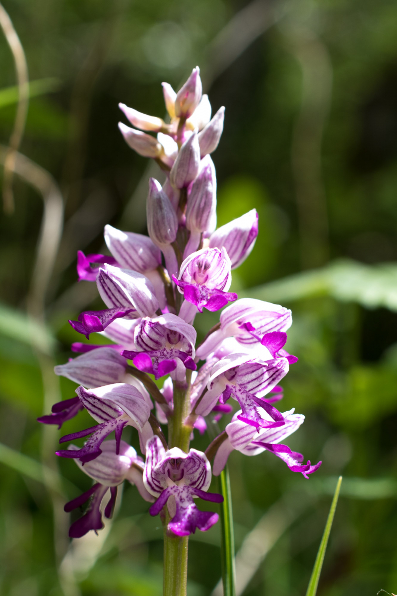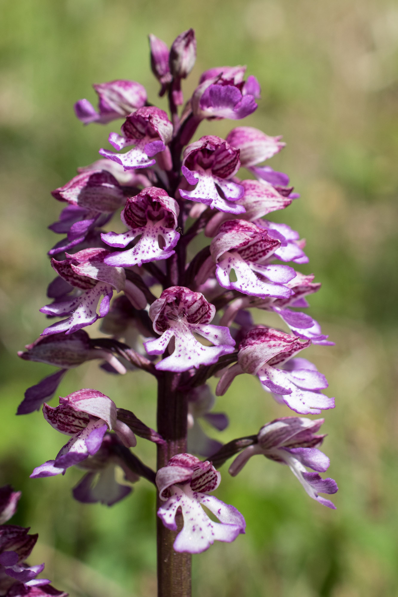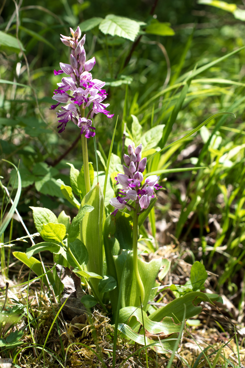 Bei der ersten Orchidee handelt es sich um Orchis militaris. Die blauen Blüten, die du für Platterbsen gehalten ist, sind Akeleien. Der Duft kommt übrigens vom Weißdorn und nicht vom Apfel. Der hätte deutlich größere Blüten.